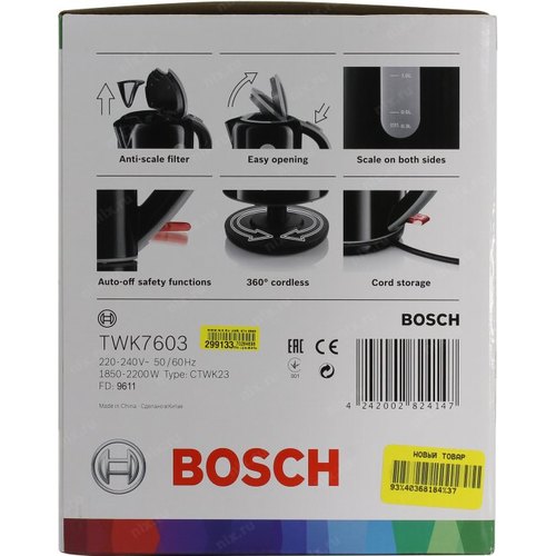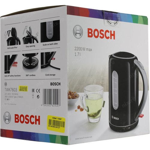 Чайник Bosch TWK7603 1.7л. 2200Вт черный (пластик) | НИКС Екатеринбург