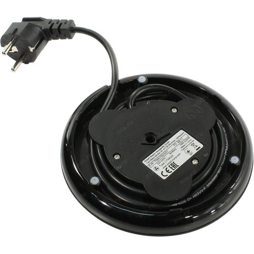 Пластик, чёрный, мощность 2200 Вт, 1,7л, корпус пластик, фильтр от накипи, скрытый нагр.элемент, шкала уровня воды с 2-х сторон