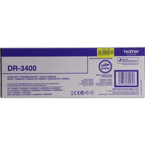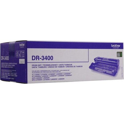 Фотобарабан Brother DR3400 для HL-L5000D, HL-L5100DN, HL-L5100DNT, HL-L5200DW, HL-L5200DWT, HL-L6250DN, HL-L6300DW, HL-L6300DWT, HL-L6400DW, HL-L6400DWT, DCP-L5500DN, DCP-L6600DW, MFC-L5700DN, MFC-L5750DW, MFC-L6800DW, MFC-L6800DWT, MFC-L6900DW, MFC-L6900DWT (50000 стр.)