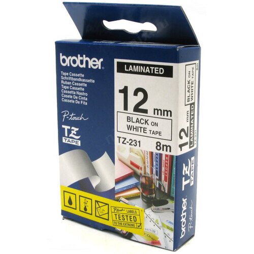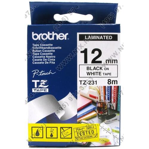 Расходный материал Brother <TZ(e)-231> ламинированная лента для печати этикеток (ширина 12мм, 8м, чёрный на белом)