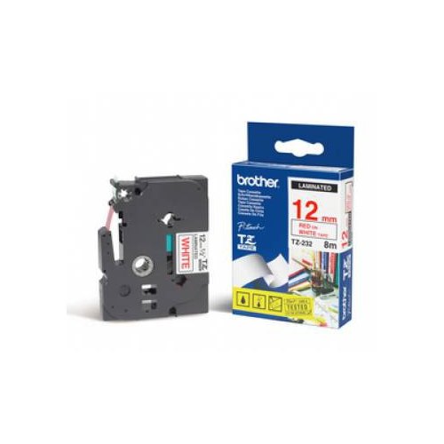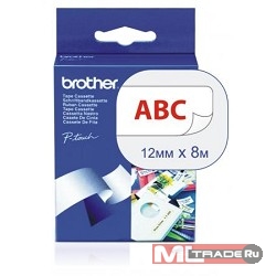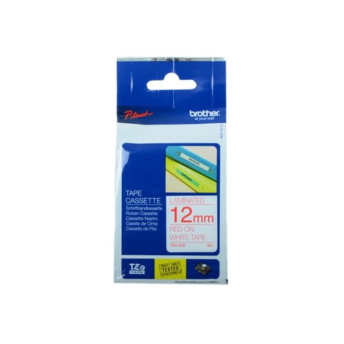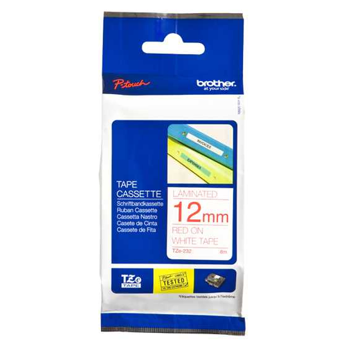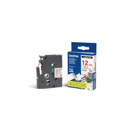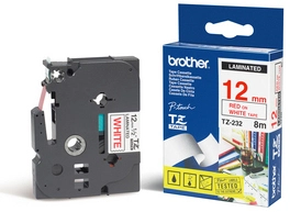 Этикетка Brother Наклейка ламинированная TZE232 (12мм красный шрифт на белом фоне, длина 8м)