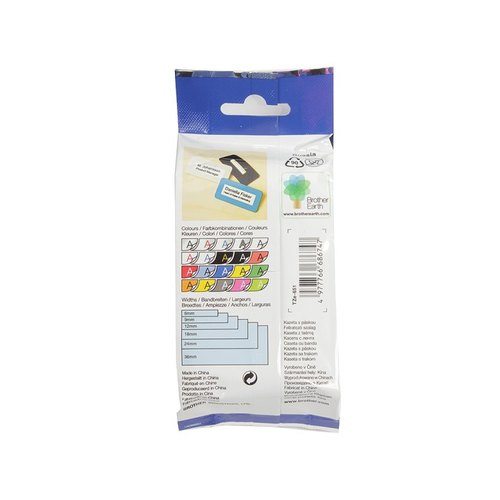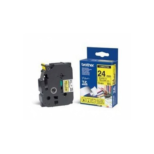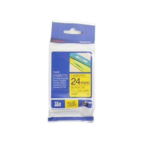 Brother TZe651: для печати наклеек черным на желтом фоне, ширина 24 мм.