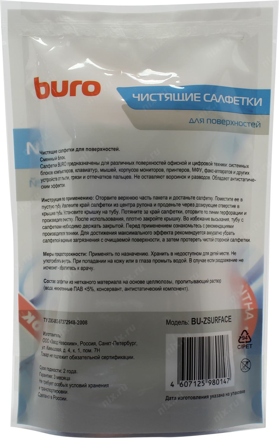 Салфетки Buro BU-Zsurface для поверхностей мягкая упаковка 100шт влажных