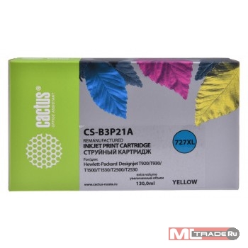 Расходные материалы B3P21A CACTUS Картридж №727 для HP DJ T920/T1500/T2530, желтый (130мл) [CS-B3P21A]