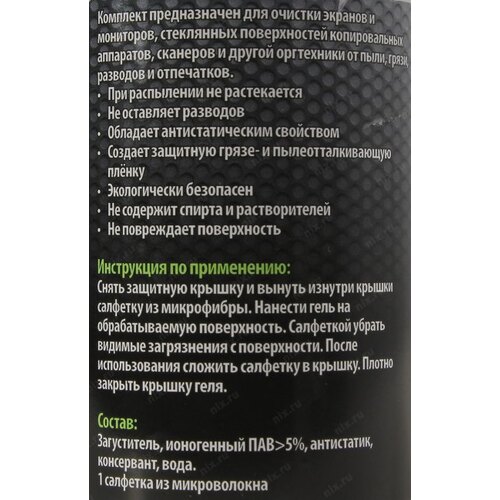 Гель 200 мл для очистки экранов и мониторов, стеклянных поверхностей копировальных аппаратов, сканеров и другой оргтехники.