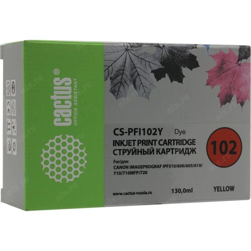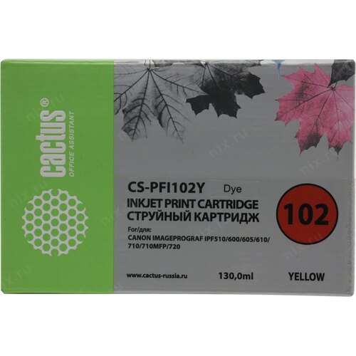 Расходные материалы CACTUS PFI-102Y Картридж струйный для Canon iPF500/iPF600/iPF700/ MFP M40/iPF765/LP17/LP24, желтый (130мл) [CS-PFI102Y] | НИКС Екатеринбург