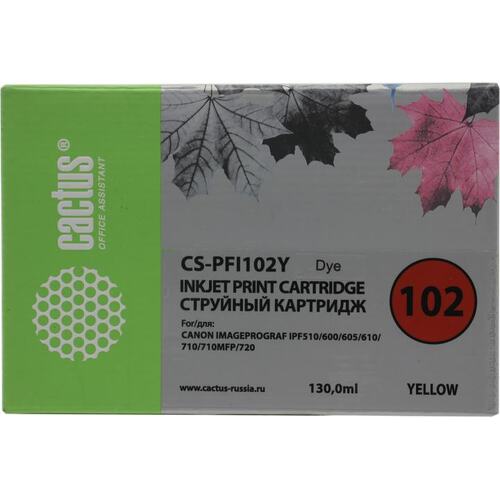 Расходные материалы CACTUS PFI-102Y Картридж струйный для Canon iPF500/iPF600/iPF700/ MFP M40/iPF765/LP17/LP24, желтый (130мл) [CS-PFI102Y]