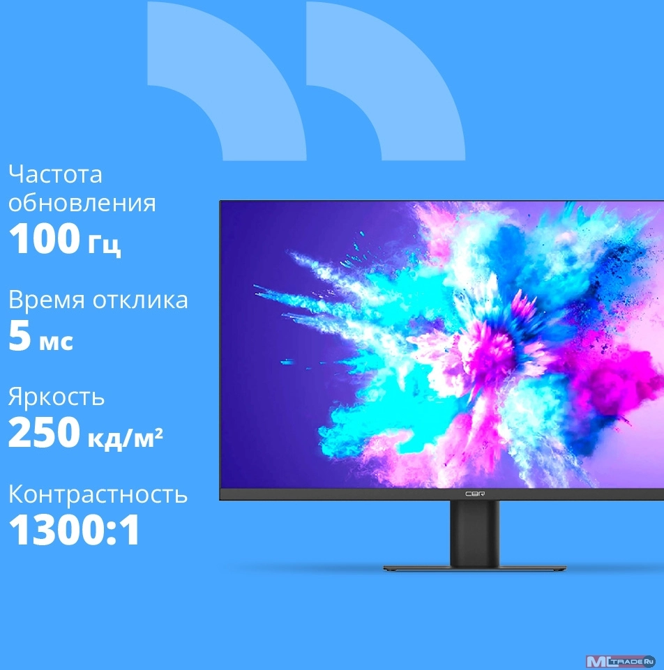 Монитор CBR LCD Монитор 23.8" MF-2402, IPS, FHD 1920x1080, 100Гц, Динамики 2*3W, 1*DP/1*HDMI/1*VGA, внешний БП, FreeSync, черный, кабель HDMI 1.5м [LCD-MF2402-OPC]