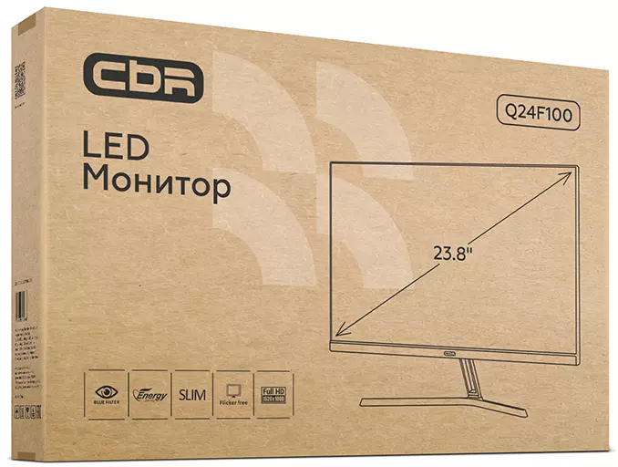 Монитор CBR LCD Монитор 23.8" Q24F100, IPS, FHD 1920x1080, 100Гц, 1*HDMI, 1*VGA, внешний БП, черный, кабель 1*HDMI в комплекте [LCD-Q24F100-OPC]