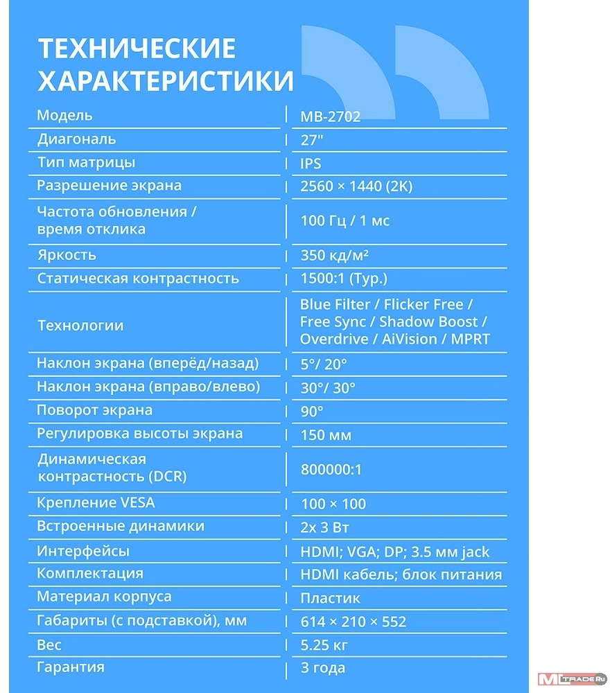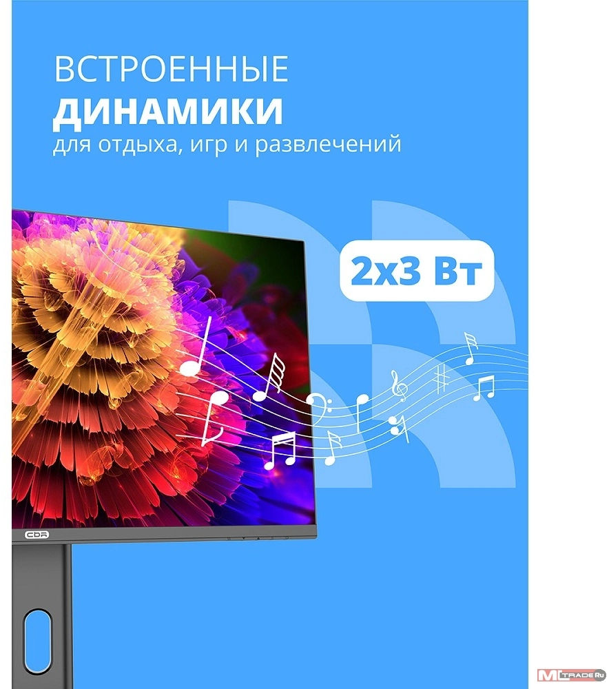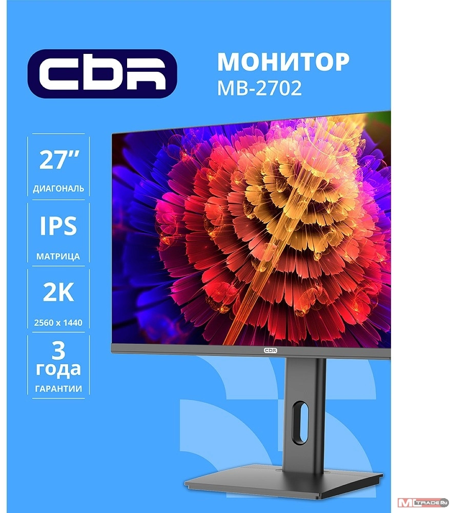 Монитор CBR LCD Монитор 27" MB-2702, IPS, QHD 2K 2560x1440, 100Гц, Динамики 2*3W, HAS, Pivot, 1*DP/1*HDMI, внутренний БП, FreeSync, черный, кабель HDMI 1.5м [LCD-MB2702-OPC]