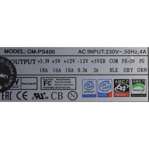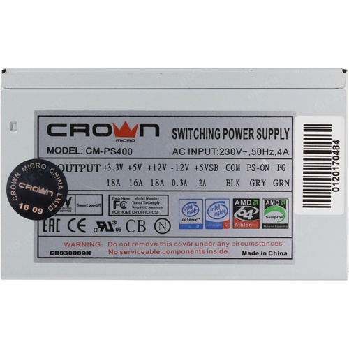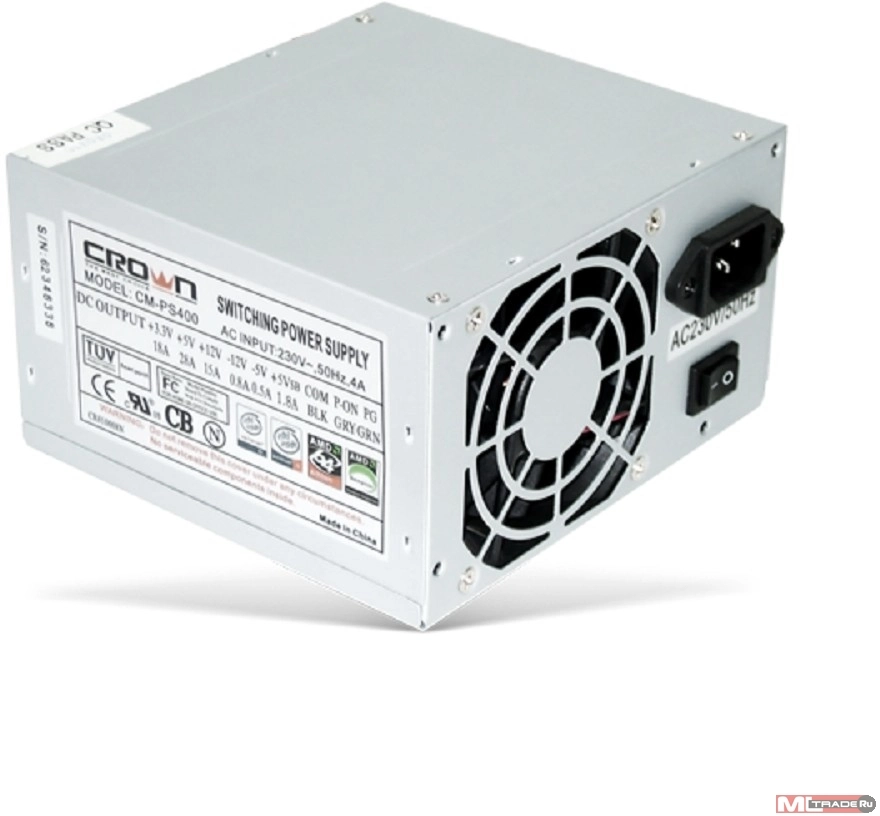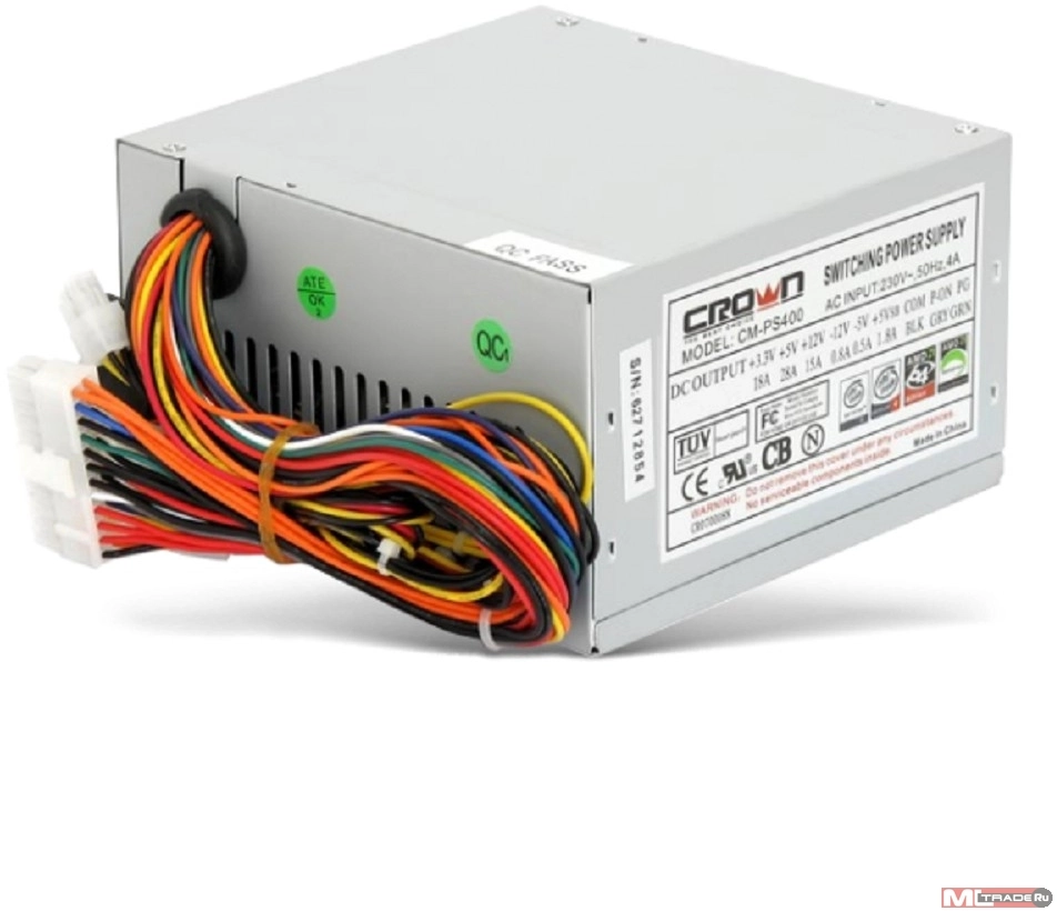 Блок питания CROWN Блок питания CM-PS400W (20+4in, 80mm FAN, SATA*2, PATA(big Molex)*4, FDD*1, 4+4pin, Lines 1x12V OEM) [CM000000002]