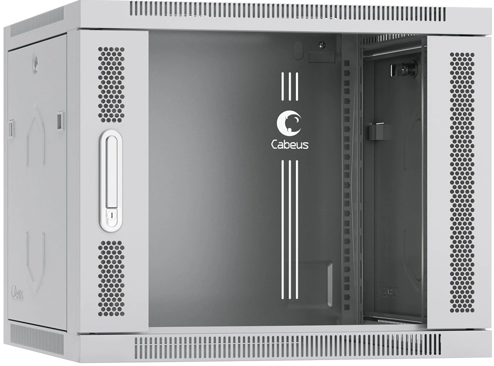 Cabeus Монтажные шкафы Cabeus SH-05F-9U60/60 Шкаф телекоммуникационный настенный 19" 9U 600x600x501mm (ШхГхВ) дверь стекло, цвет серый (RAL 7035)