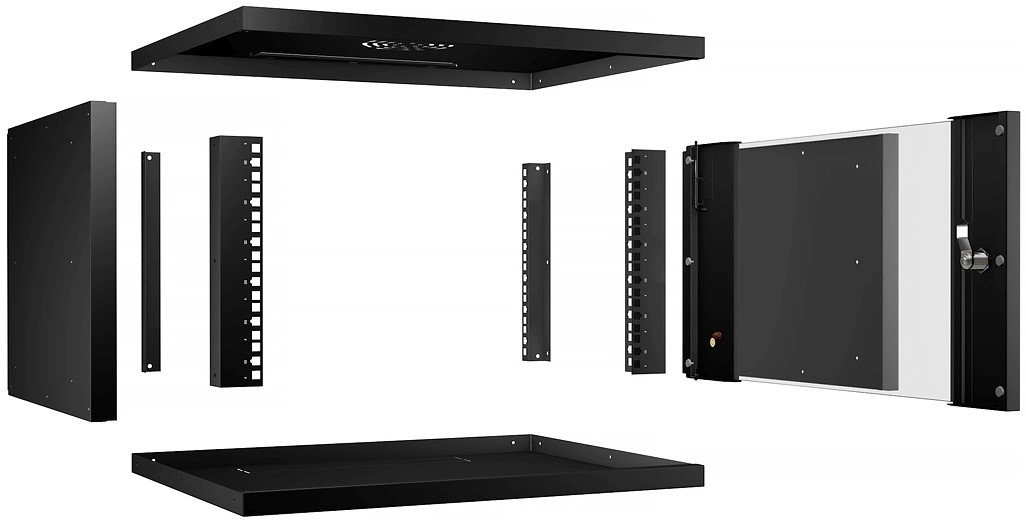 Cabeus Монтажные шкафы Cabeus WSC-05D-6U55/45-BK Шкаф телекоммуникационный настенный 19" 6U, серия LIGHT разборный, дверь стекло, цвет черный