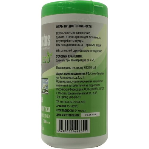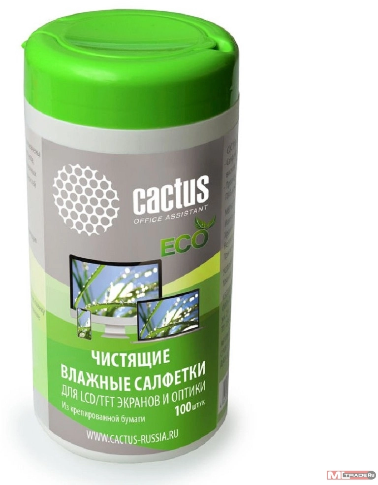 Салфетки Cactus CS-1001PE для экранов и оптики туба 100шт влажных