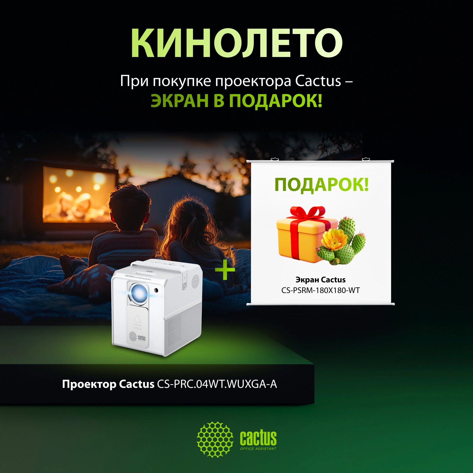 Проектор Cactus CS-PRC.04WT.Full HD-A + Экран CS-PSRM-180X180-WT LCD (1920x1080) 1000:1 ресурс лампы:50000часов 1xUSB typeA 1xHDMI 1.35кг CS-PRC.04WT.WUXGA-A_BUNDLE