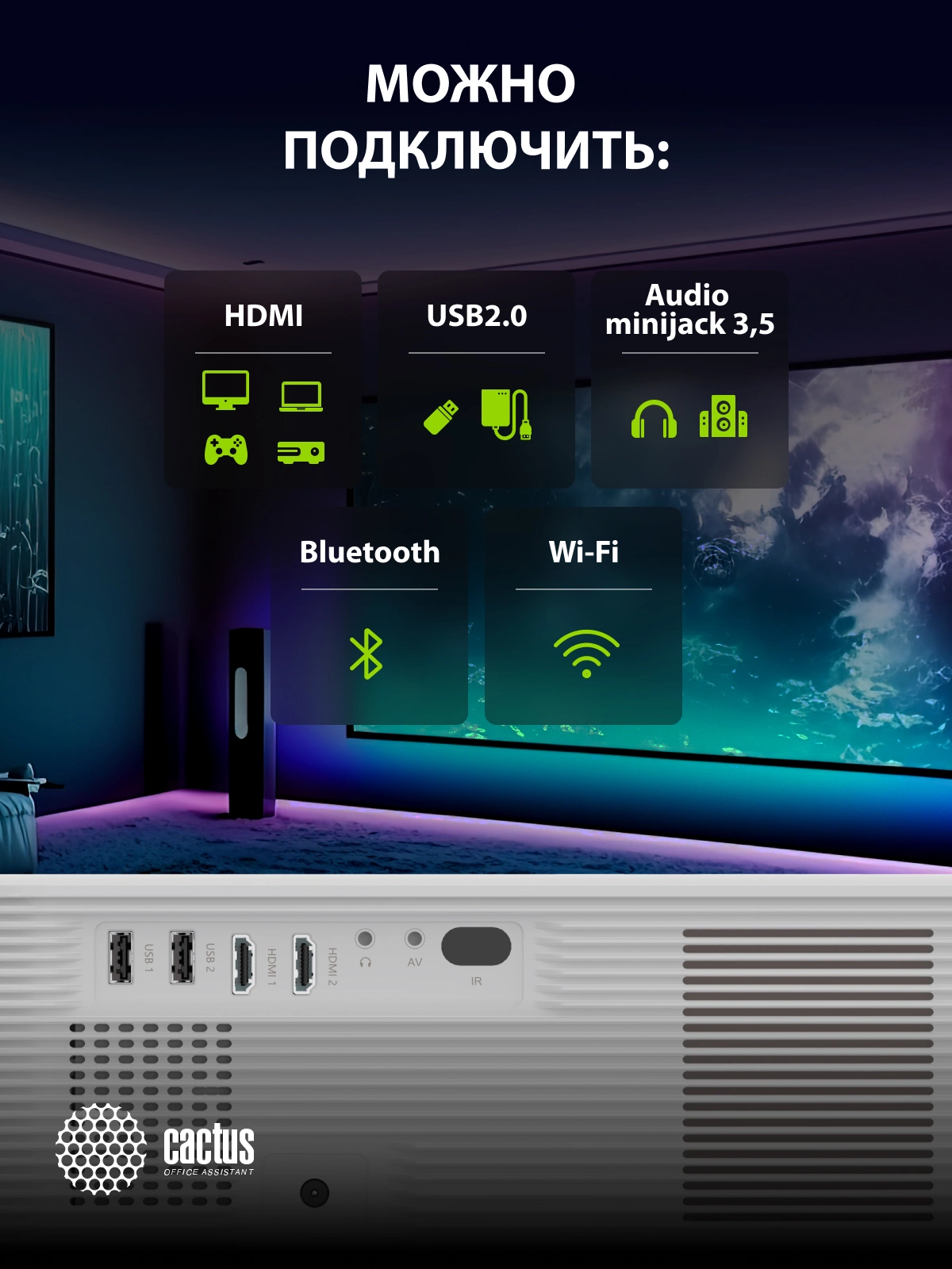 Проектор Cactus CS-PRM.01WT.Full HD-A LCD 19000Lm LS 700Lm ANSI (1920x1080) 2500:1 ресурс лампы:50000часов 2xUSB typeA 2xHDMI 1.8кг CS-PRM.01WT.WUXGA-A