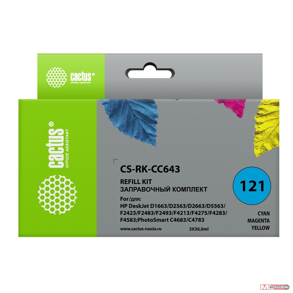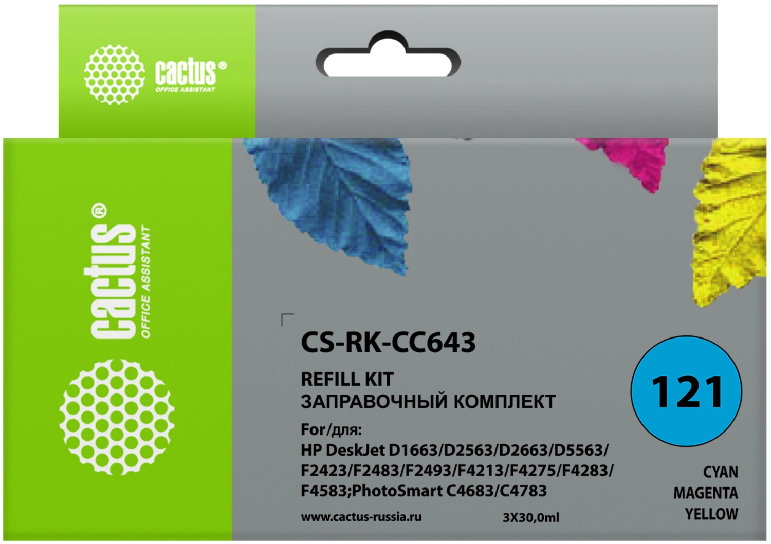 Заправочный набор Cactus CS-RK-CC643 многоцветный 3x90мл для HP DJ D1663/D2563/PS C4683/C4783