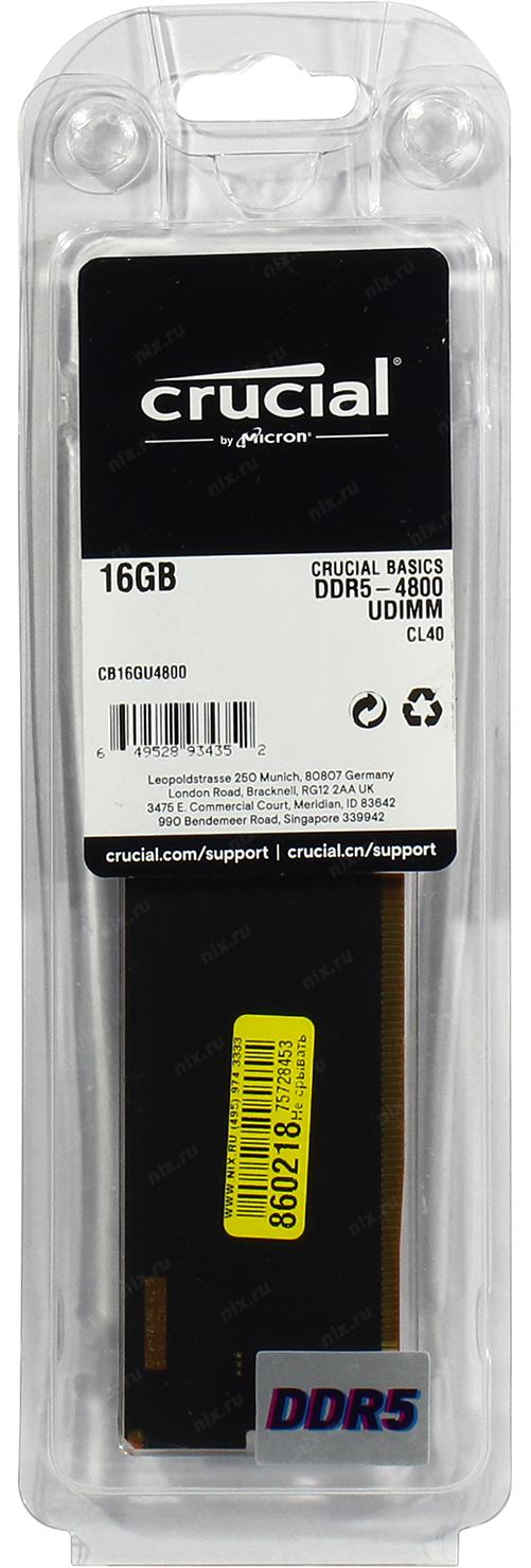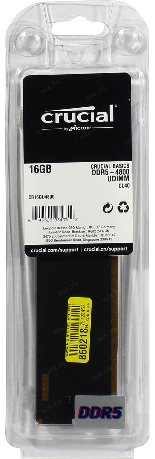 Модуль памяти Crucial 16GB DDR5 4800MHz UDIMM CB16GU4800