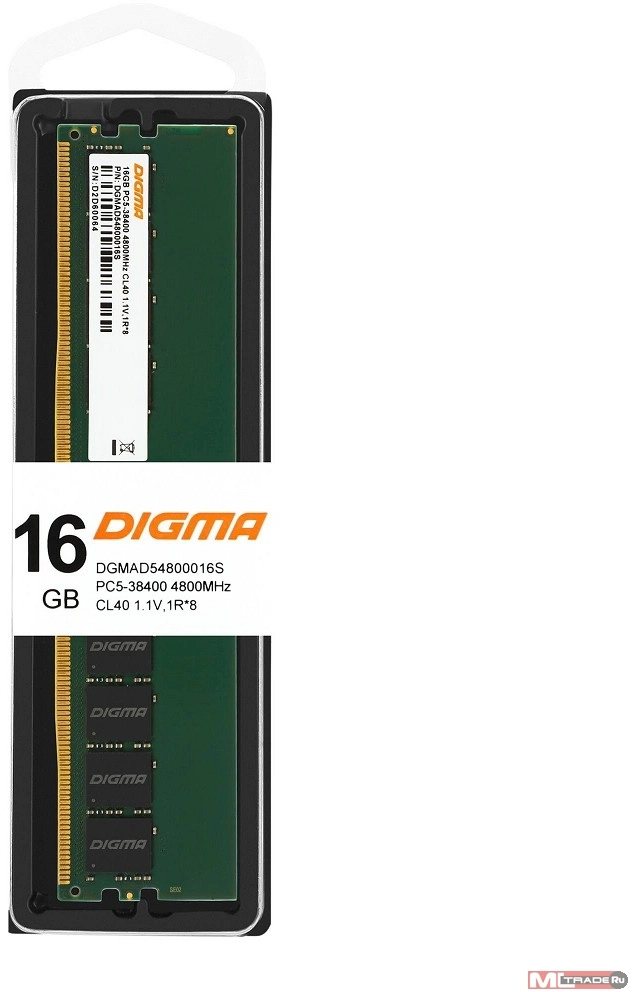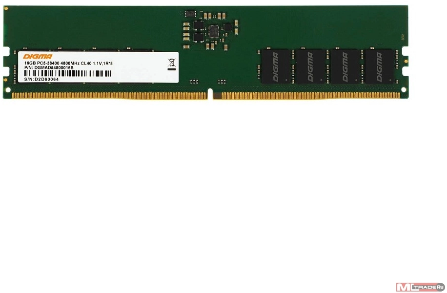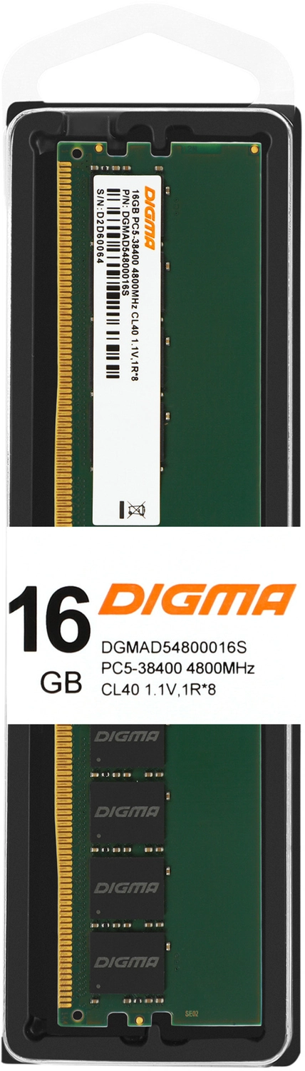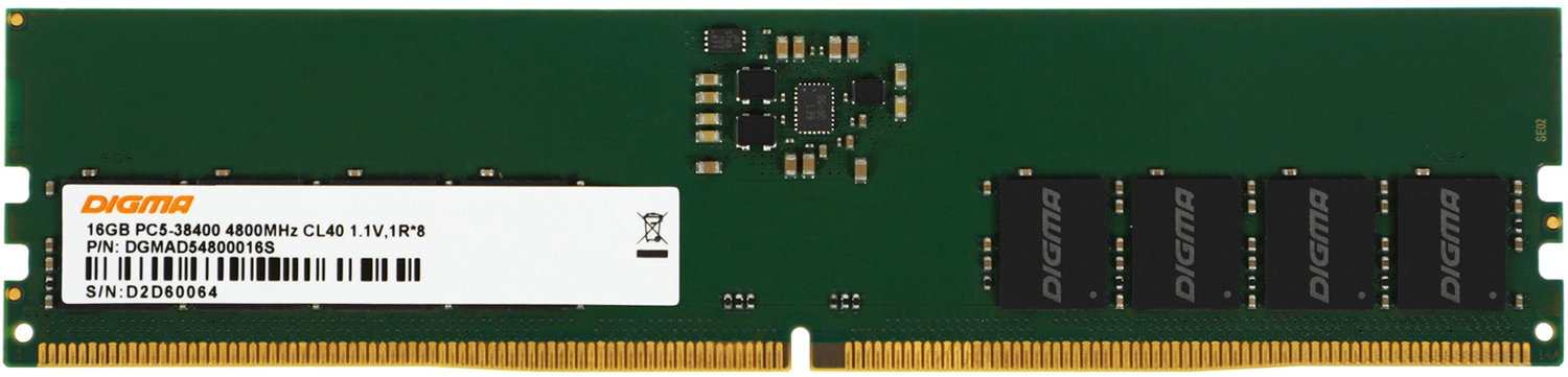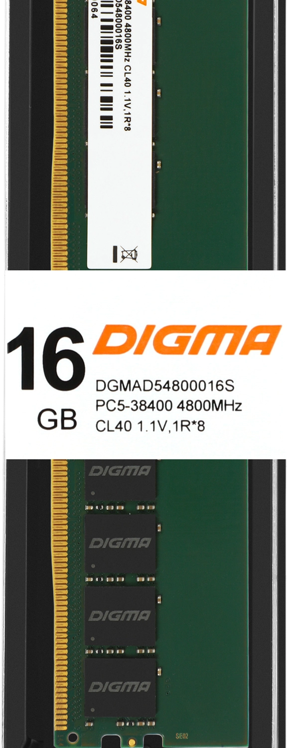 Память DDR5 16Gb 4800MHz Digma DGMAD54800016S RTL PC5-38400 CL40 DIMM 288-pin 1.1В single rank Ret