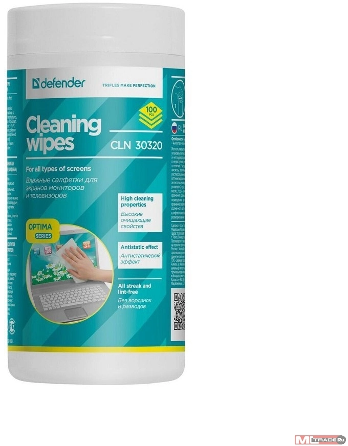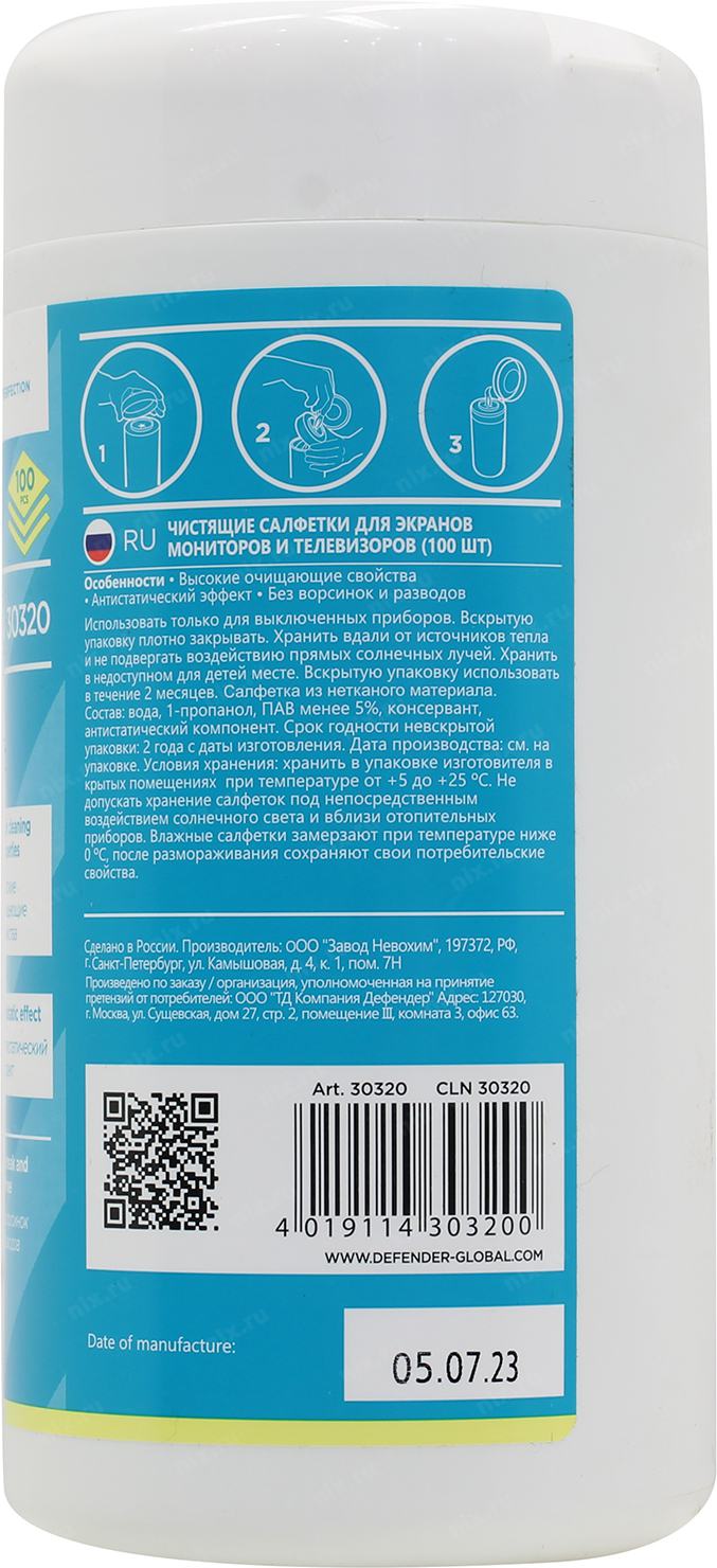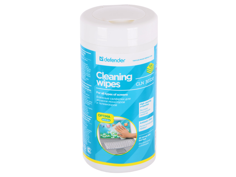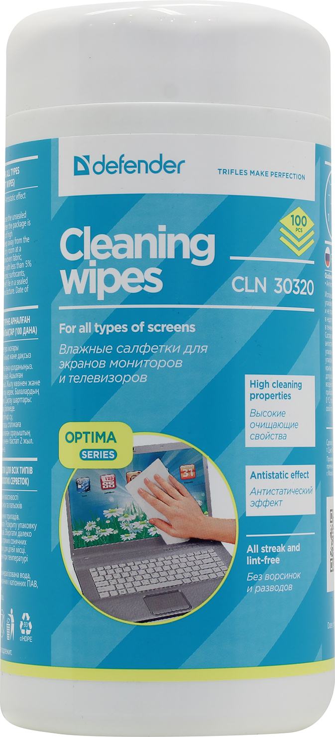 Чистящие средства DEFENDER Влажные чистящие салфетки CLN 30320 для экранов в тубе, 100шт.