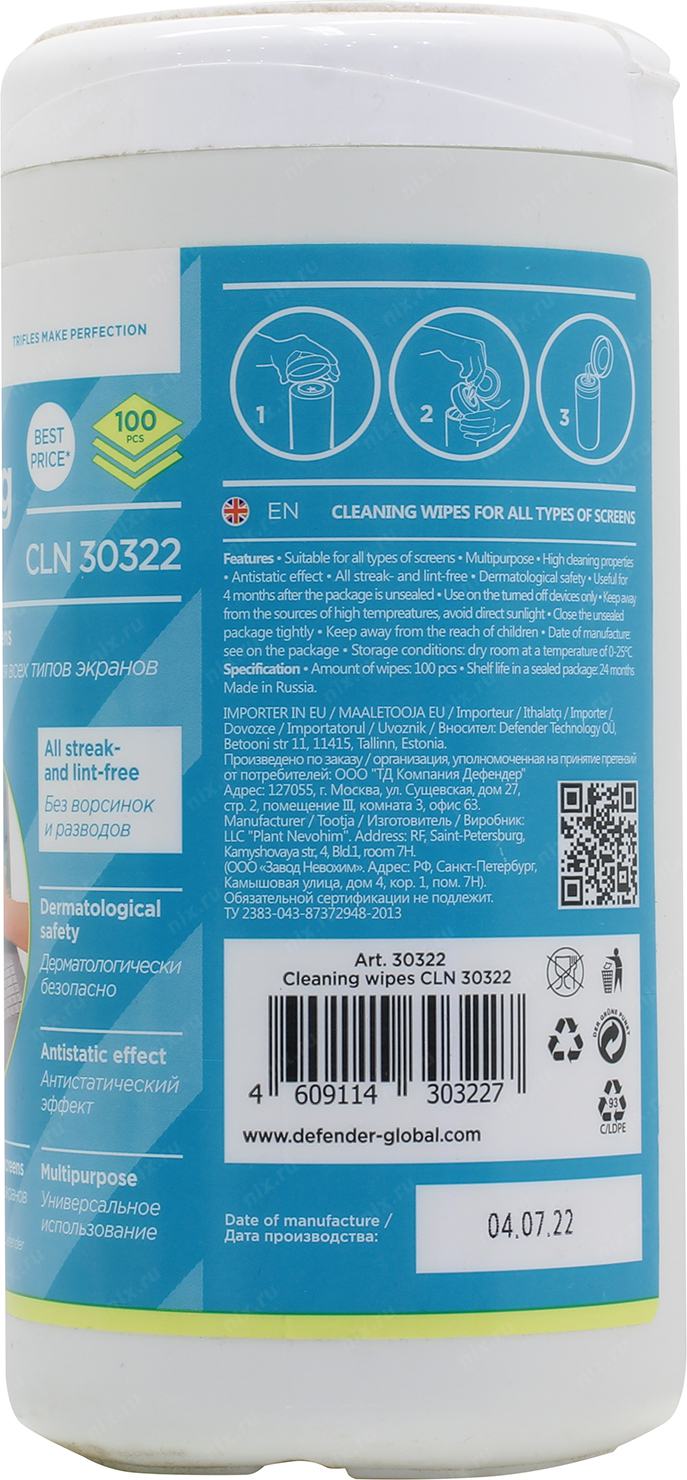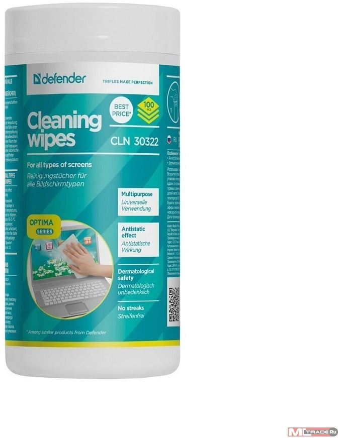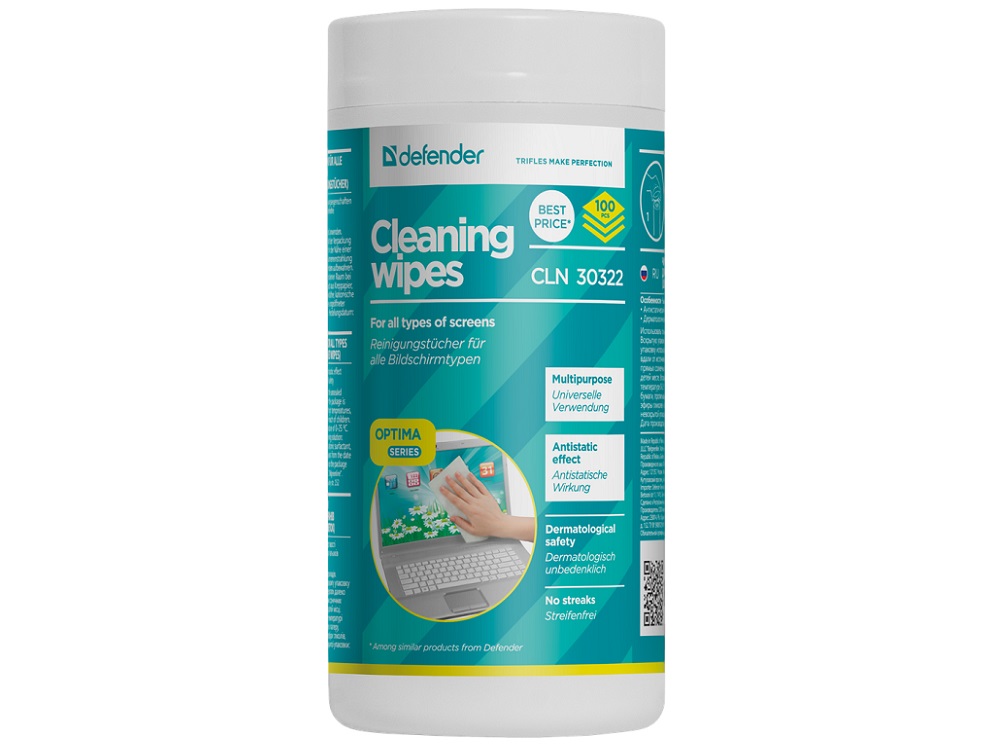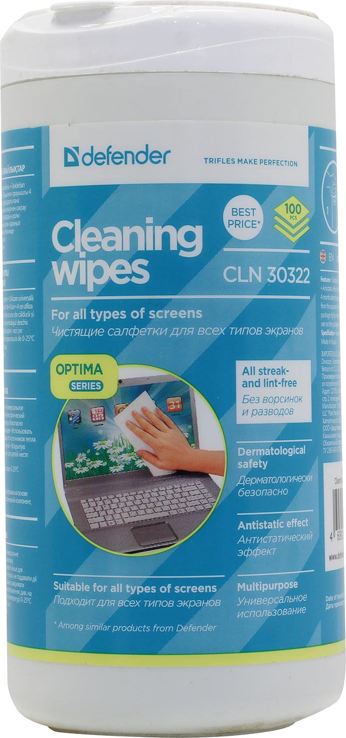 Чистящие средства DEFENDER Влажные чистящие салфетки CLN 30322 для экранов в тубе, 100шт.