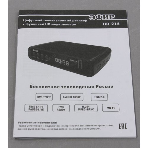 Ресивер DVB-T2 Сигнал Эфир HD-215 черный 20215