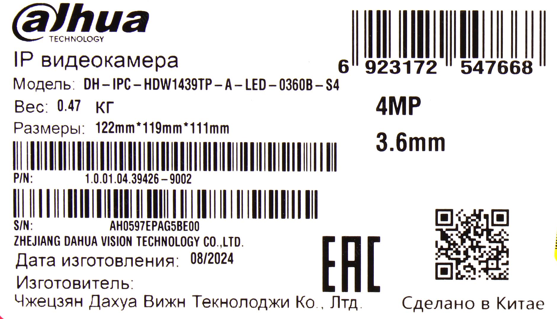 Видеокамера Dahua <DH-IPC-HDW1439TP-A-LED-0360B-S4> IP Camera