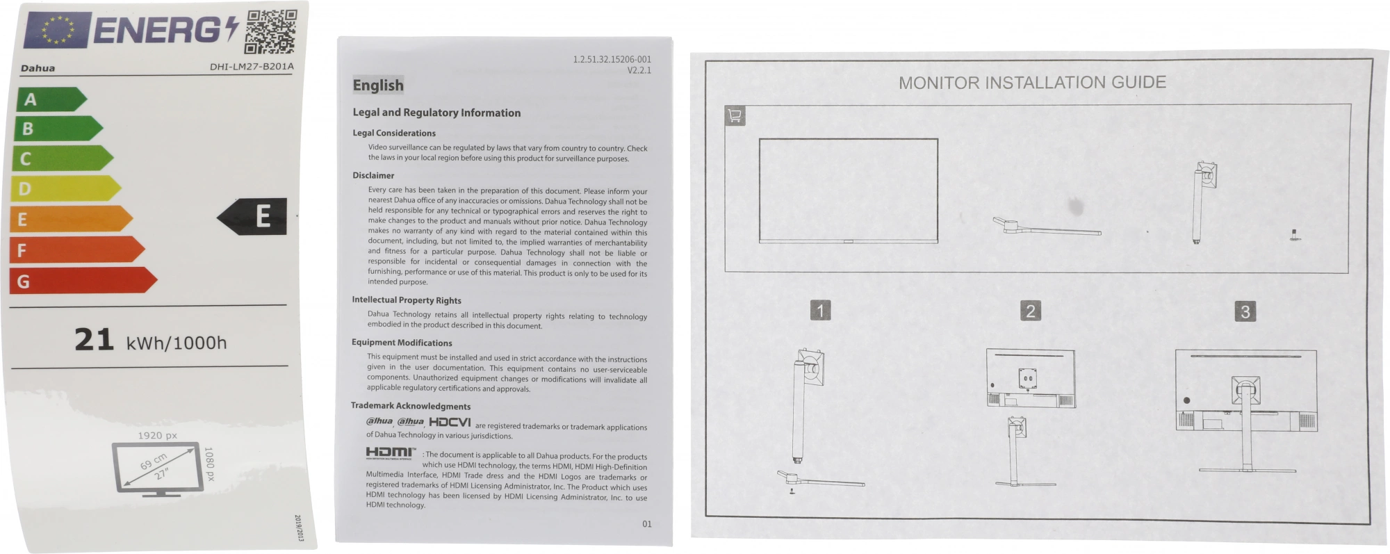 Монитор Dahua DHI-LM27-B201A 27"(16:9) FullHD монитор IPS. LED подсветка, 1920x1080, 250 кд/м2, 1000:1, 178°/178°, 5 мс, 100Гц, Цвет: 16.7Млн (8 бит), VESA: 100x100 м. VGAx1, HDMIx1, DPx1