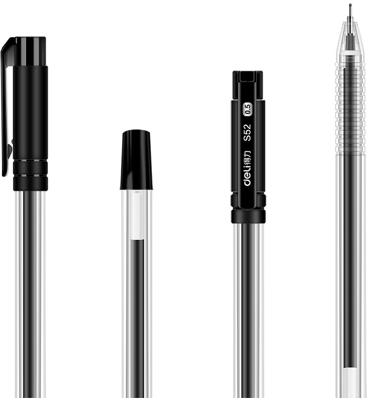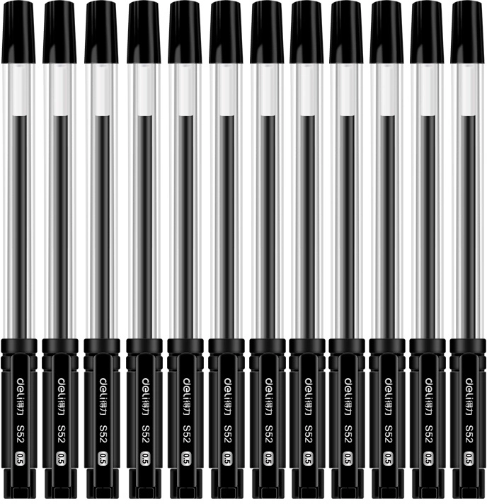 Набор ручек гелев. Deli 33205-BK прозрачный/черный черн. черн. блистер (12шт) линия 0.5мм резин. манжета 12 ручек + 12 сменных стержней (продается кратно 12 шт.)
