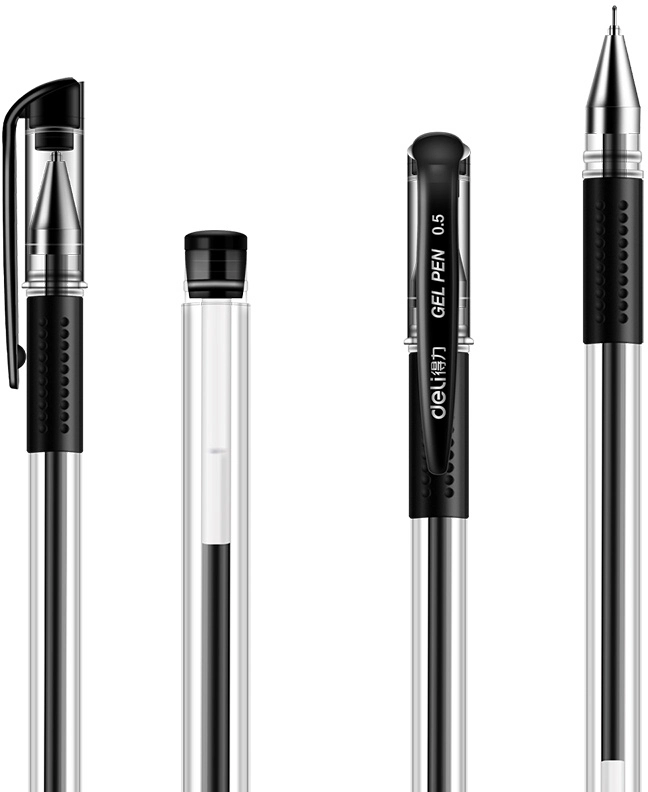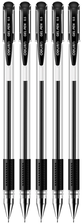 Набор ручек гелев. Deli 6605-BK прозрачный/черный черн. черн. блистер (5шт) линия 0.5мм резин. манжета (продается кратно 20 шт.)