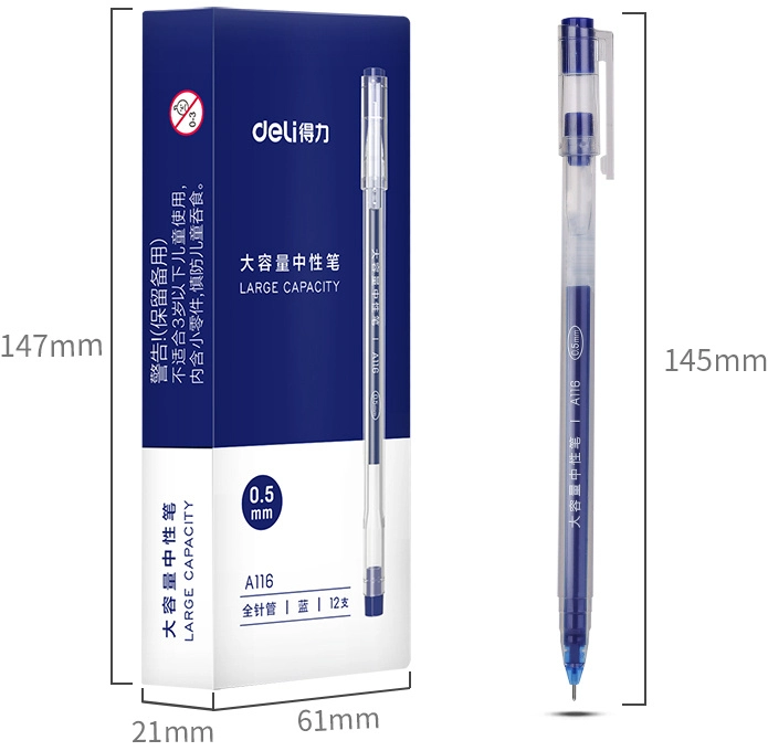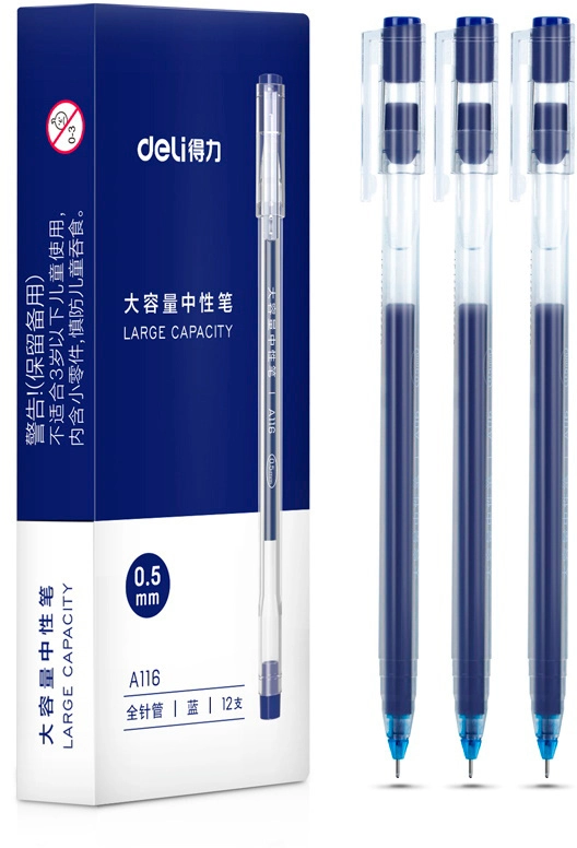 Ручка гелев. Deli A116-BL прозрачный син. черн. линия 0.5мм (продается кратно 12 шт.)
