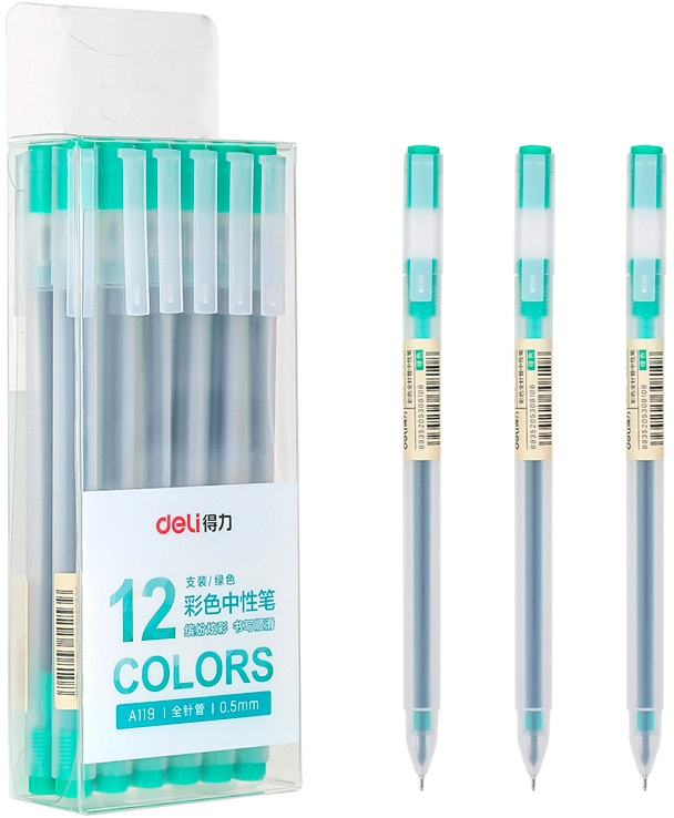 Ручка гелев. Deli A119-GN прозрачный зел. черн. линия 0.5мм (продается кратно 12 шт.)