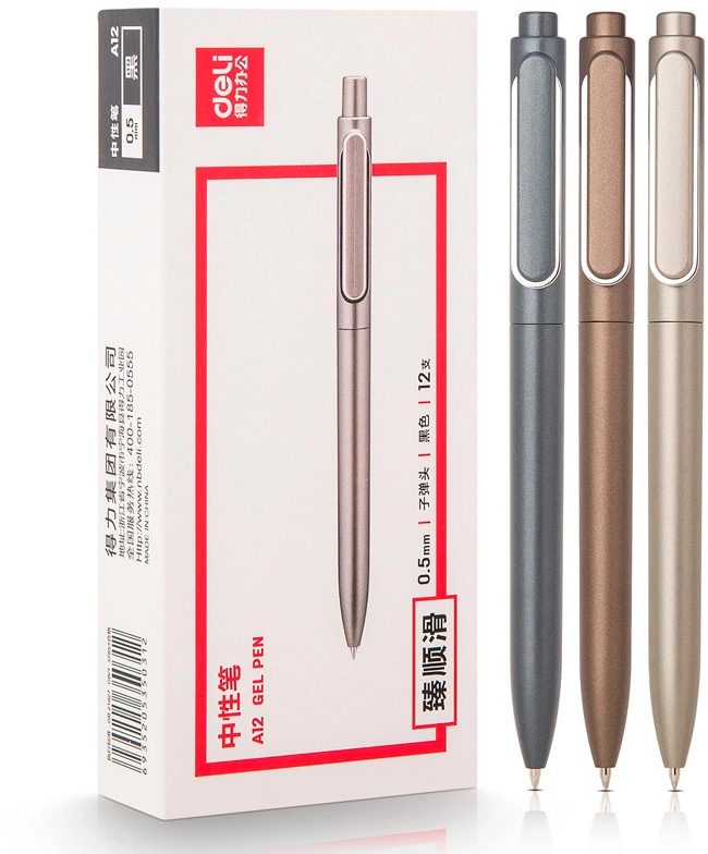 Ручка гелев. автоматическая Deli A12-BK ассорти черн. черн. линия 0.5мм (продается кратно 12 шт.)