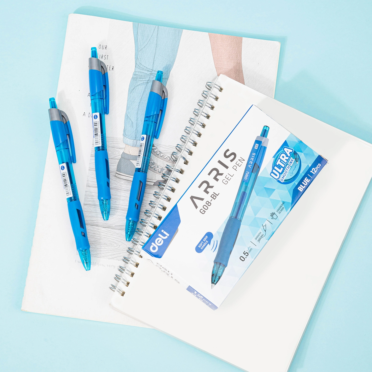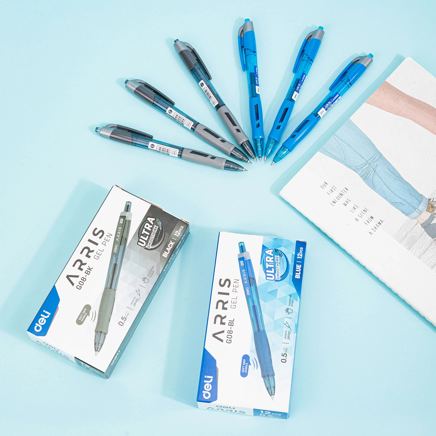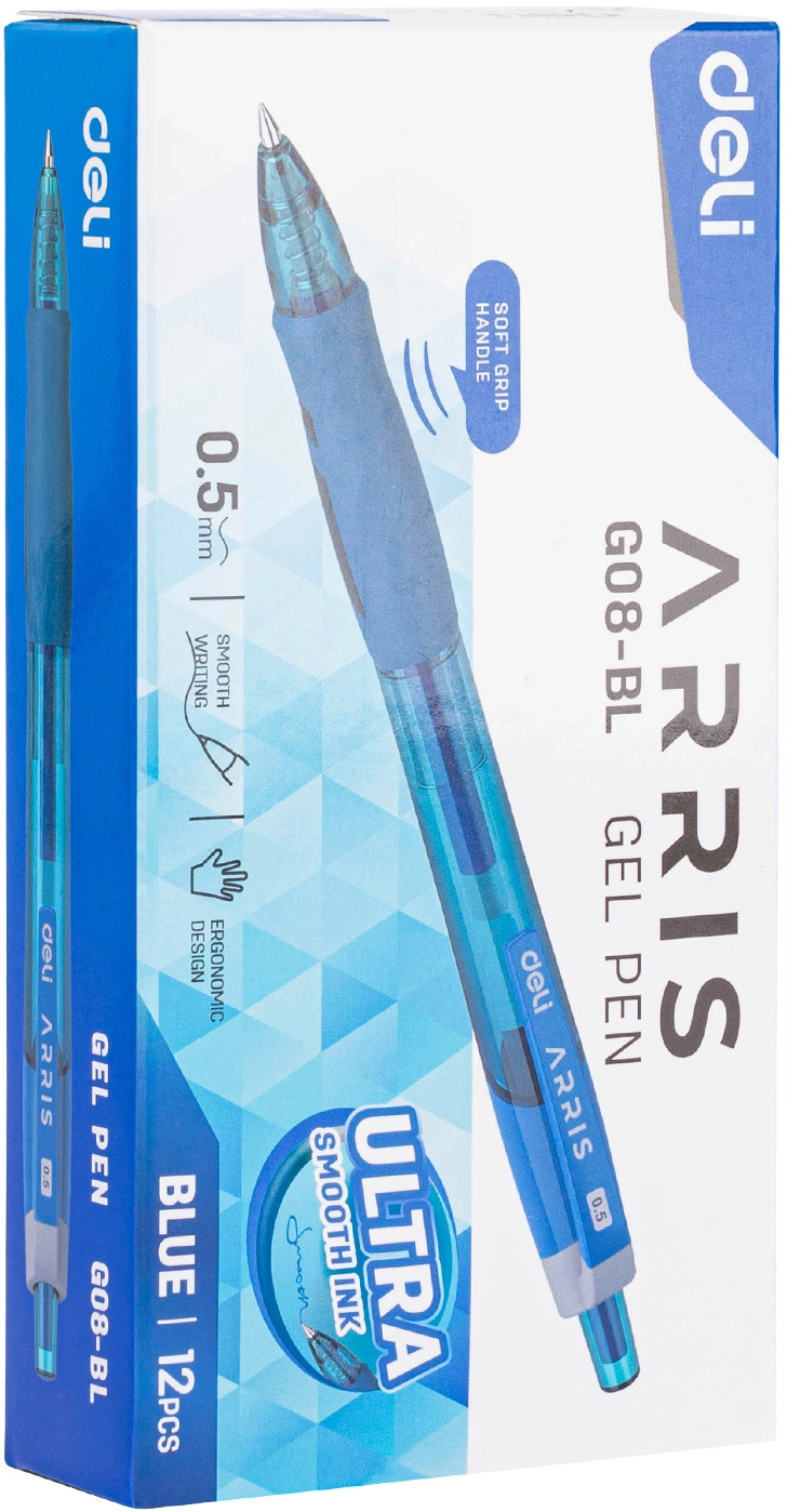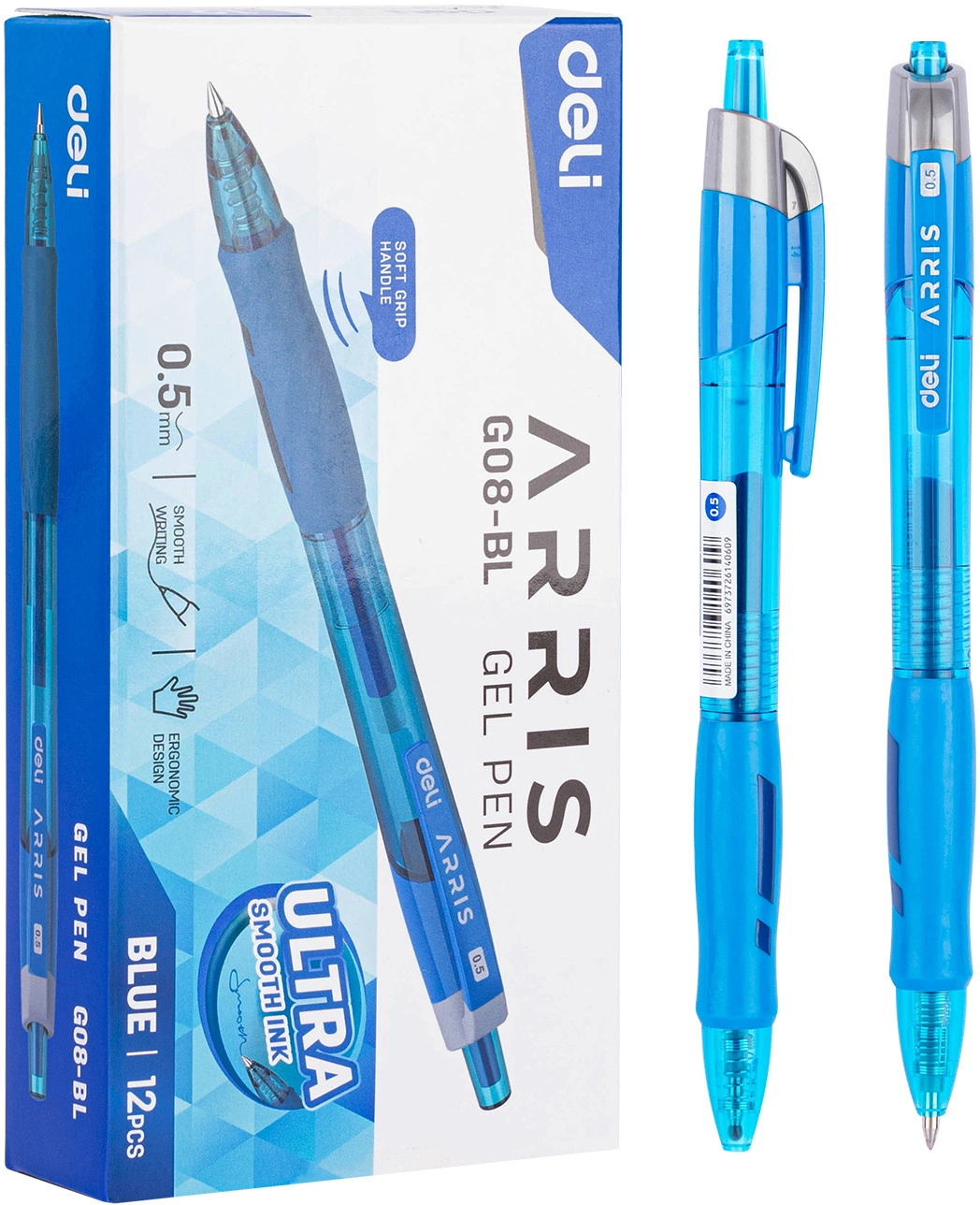 Ручка гелев. автоматическая Deli Arris EG08-BL прозрачный/голубой d=0.5мм син. черн. резин. манжета (продается кратно 12 шт.)