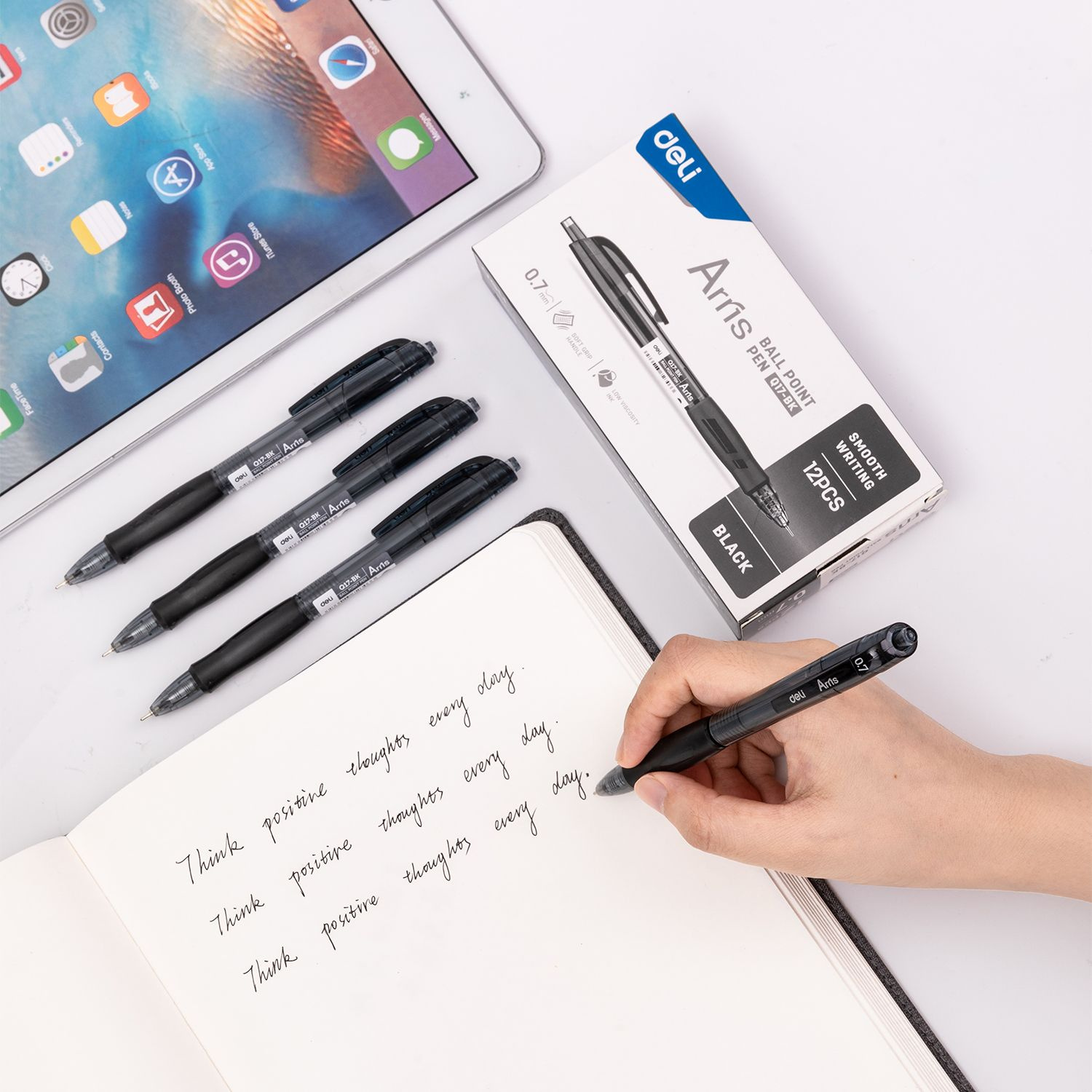 Ручка шариков. автоматическая Deli Arris EQ17-BK черн d=0.7мм черн. черн. резин. манжета (продается кратно 12 шт.)
