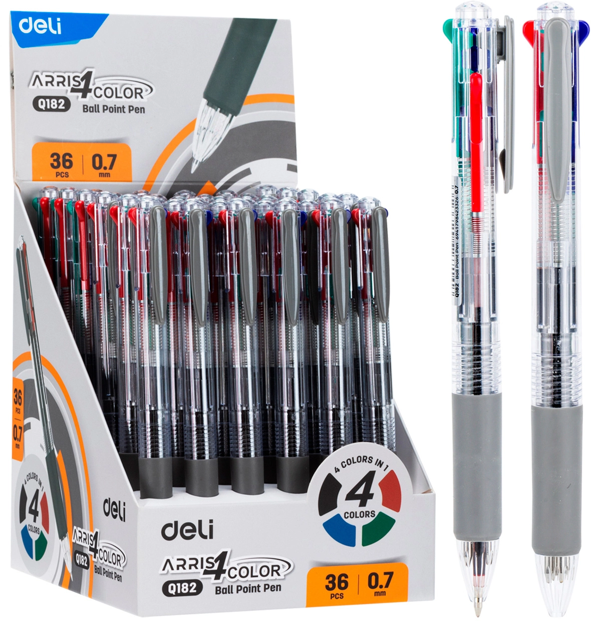 Ручка шариков. автоматическая Deli Arris EQ182 прозрачный/серый d=0.7мм ассор. черн. 4стерж. резин. манжета 4цв. (продается кратно 36 шт.)
