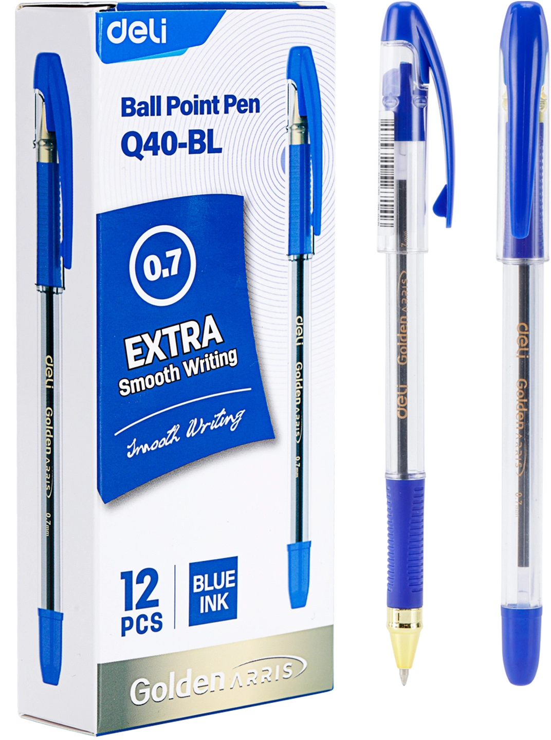 Ручка шариков. Deli Arris Golden CQ40-BL прозрачный d=0.7мм син. черн. (продается кратно 12 шт.)
