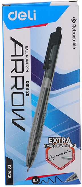 Ручка шариков. автоматическая Deli Arrow EQ01320 прозрачный/черный d=0.7мм черн. черн. черный (продается кратно 12 шт.)