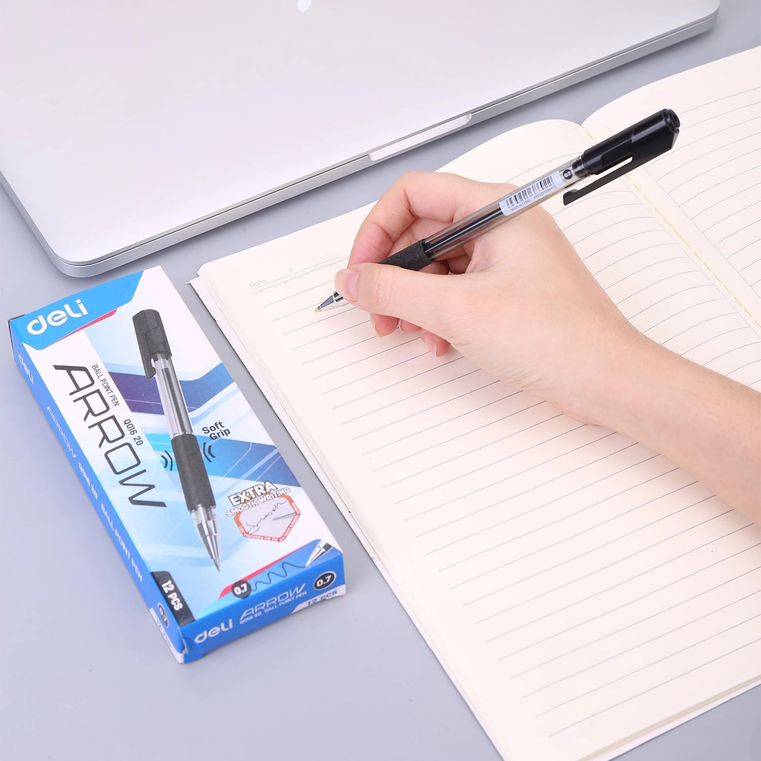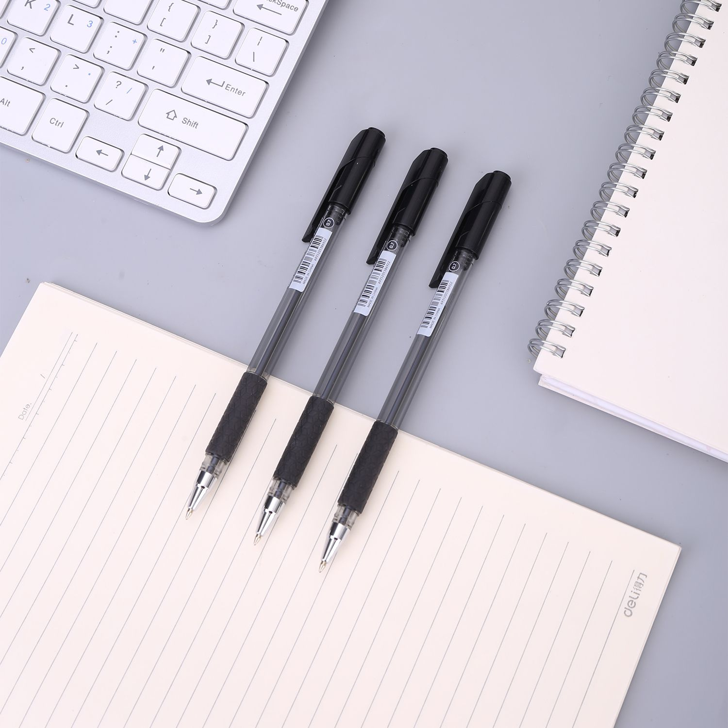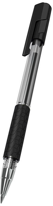 Ручка шариков. Deli Arrow EQ01620 прозрачный/черный d=0.7мм черн. черн. резин. манжета (продается кратно 12 шт.)