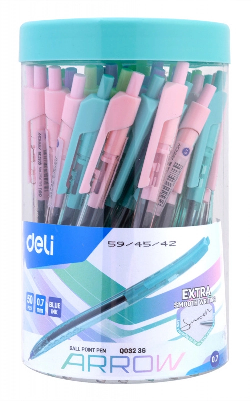 Ручка шариков. автоматическая Deli Arrow EQ03236-1 прозрачный/ассорти d=0.7мм син. черн. ассорти (продается кратно 50 шт.)