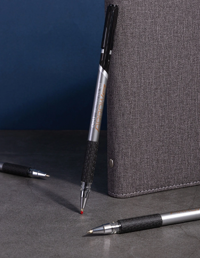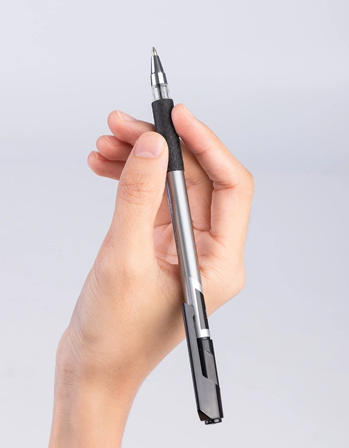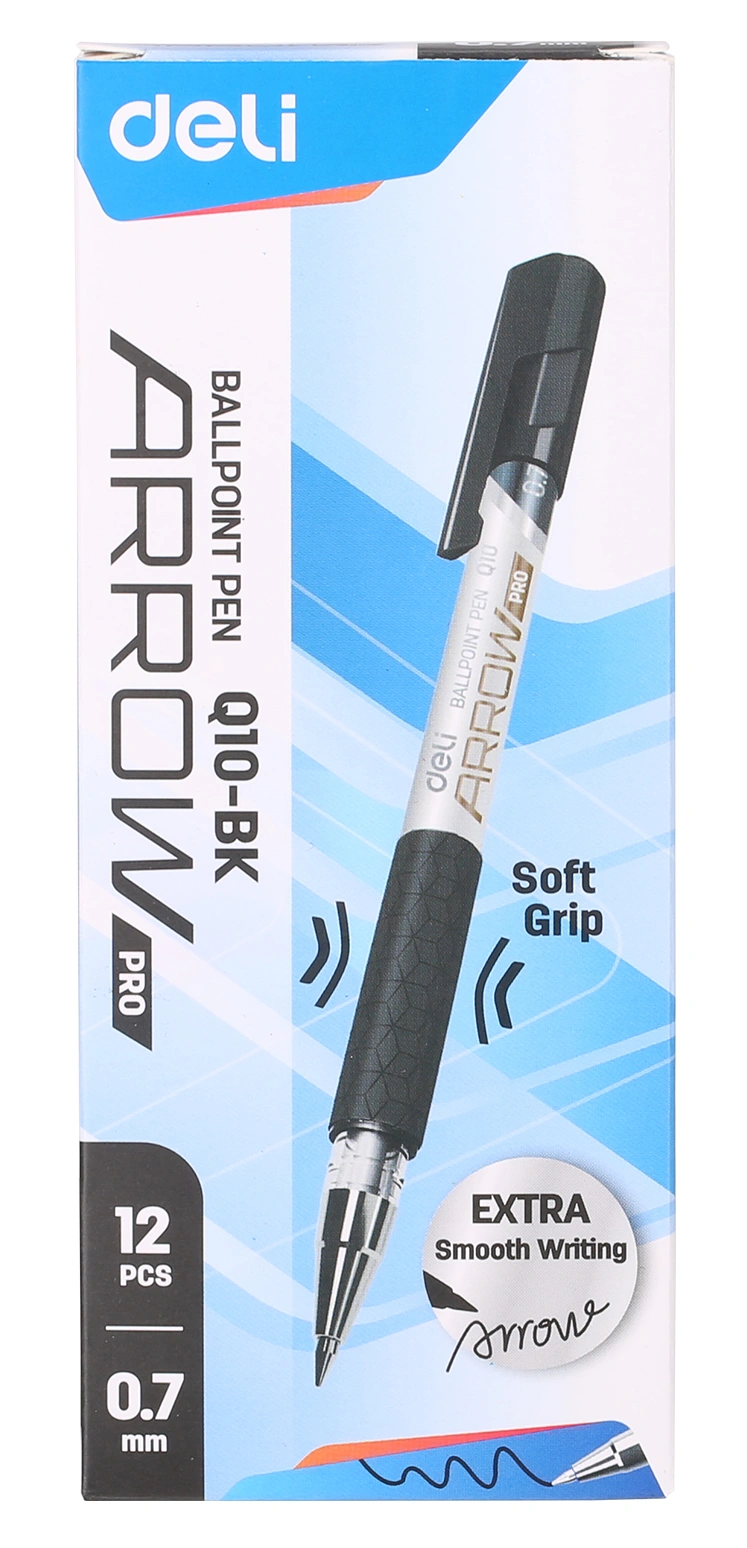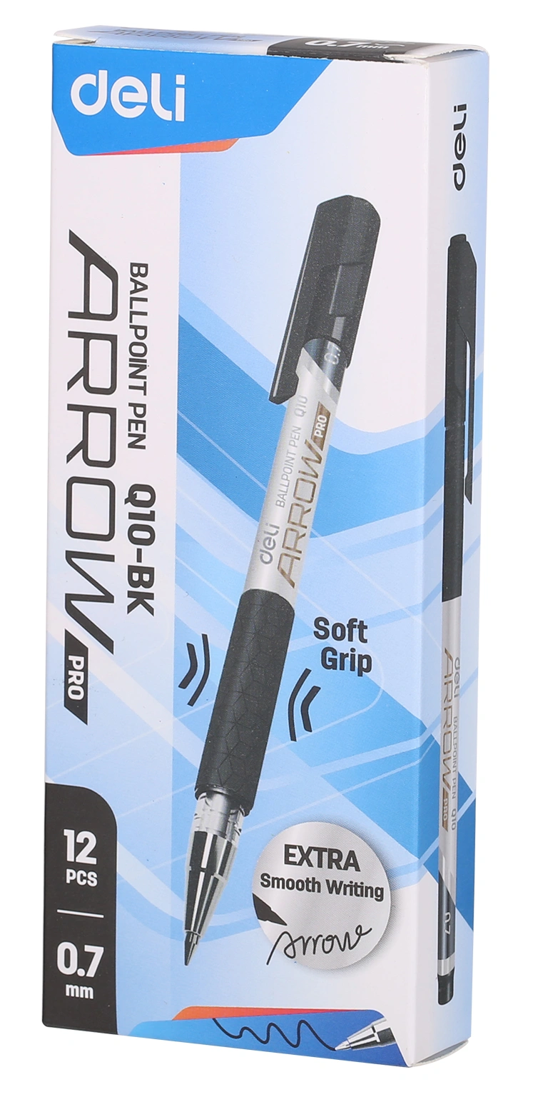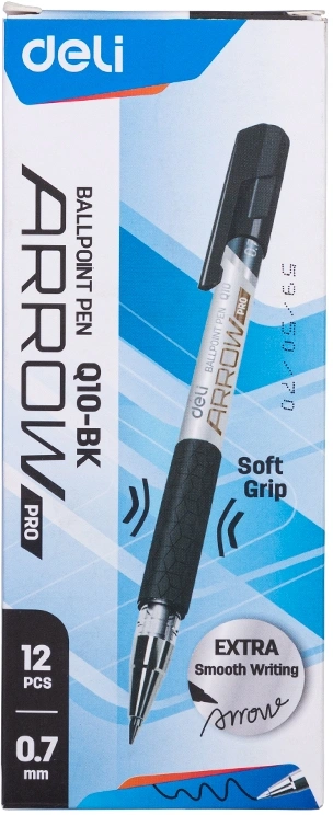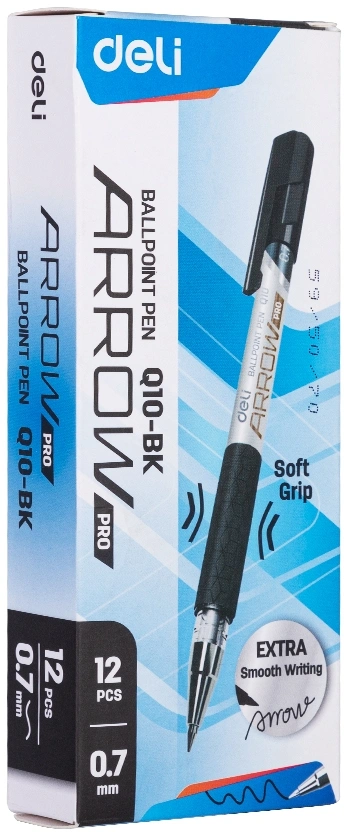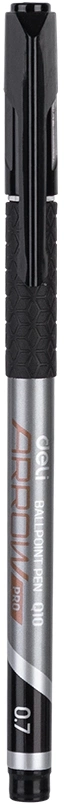 Ручка шариков. Deli Arrow EQ10-BK серый мет./черный d=0.7мм черн. черн. резин. манжета (продается кратно 12 шт.)