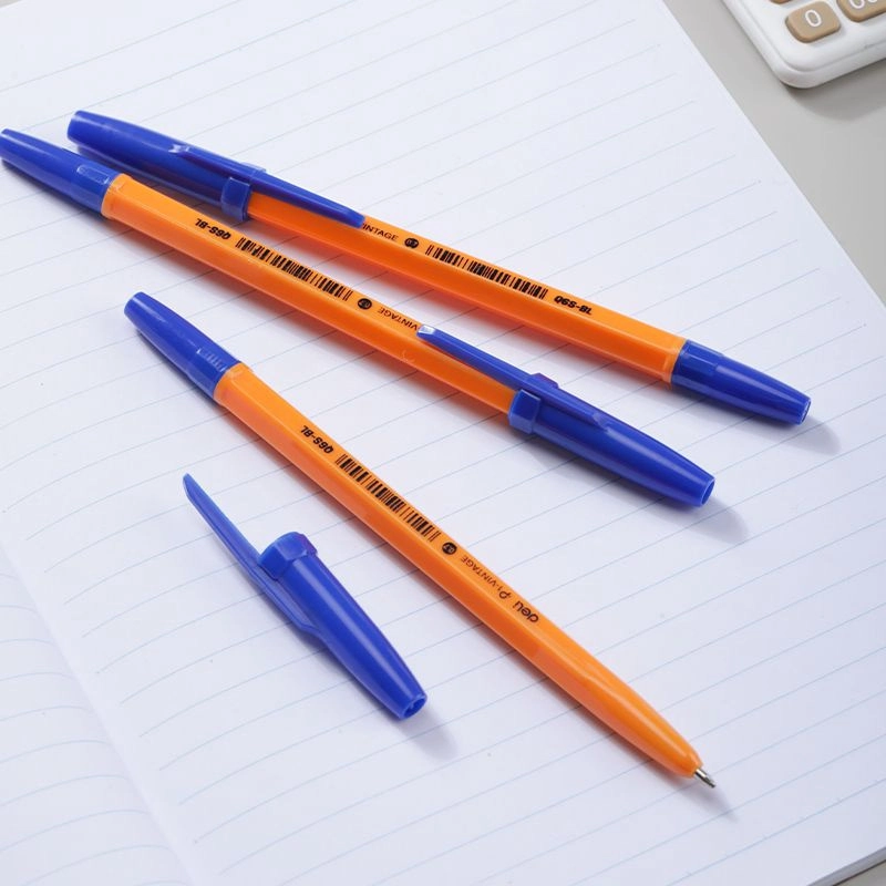 Набор ручек шариков. Deli Classic EQ6S-MT-BL оранжевый/синий d=0.7мм блистер (5шт) сменный стержень шестигр. (продается кратно 24 шт.)