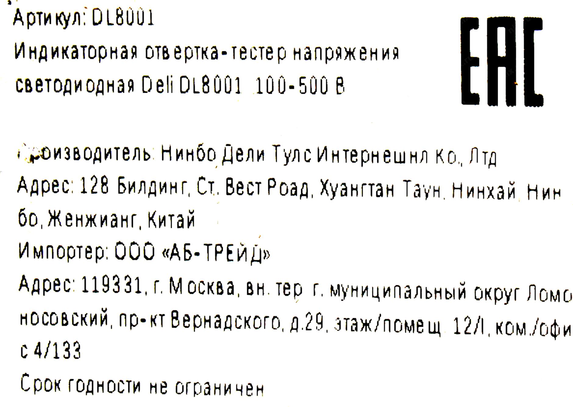 Deli Индикаторная отвертка-тестер напряжения светодиодная Deli DL8001