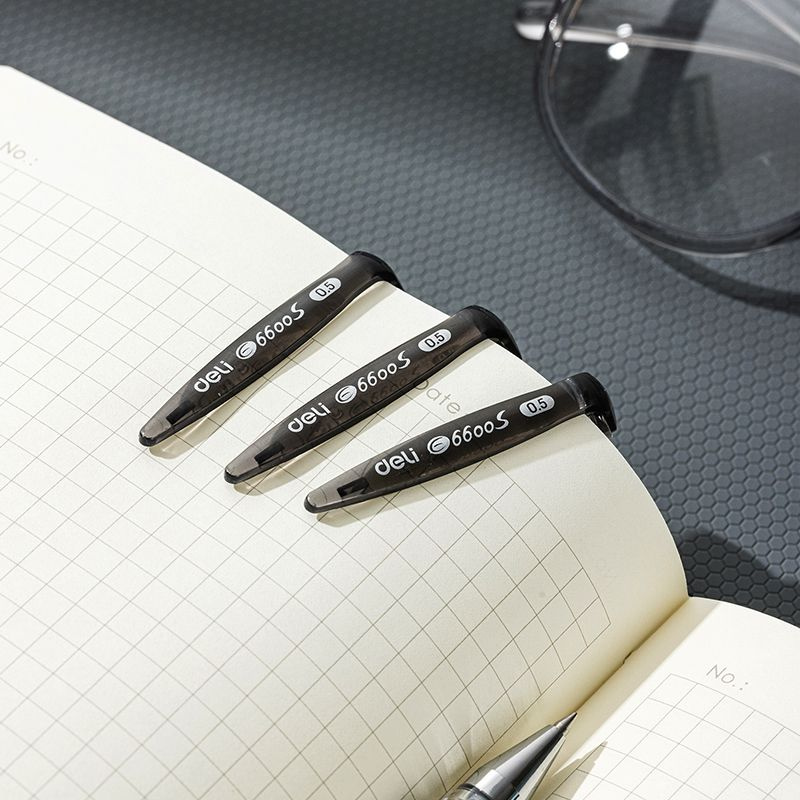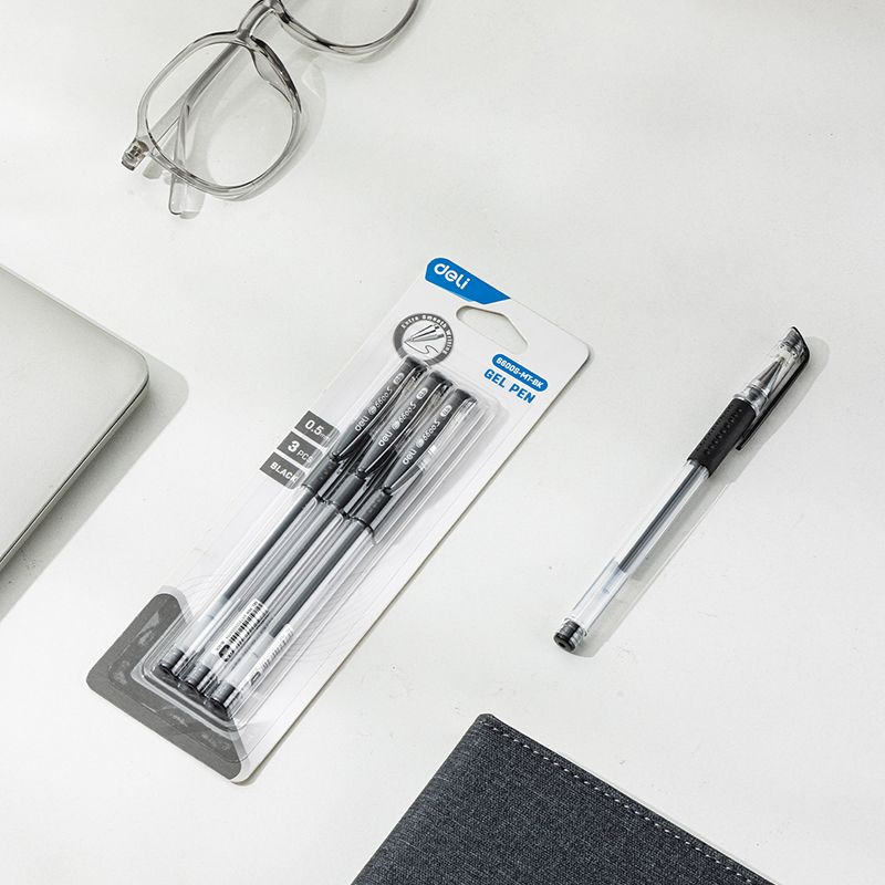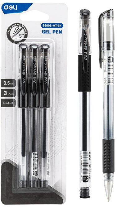 Набор ручек гелев. Deli Daily E6600S-MT-BK прозрачный/черный d=0.5мм черн. черн. блистер (3шт) сменный стержень кругл. резин. манжета (продается кратно 24 шт.)