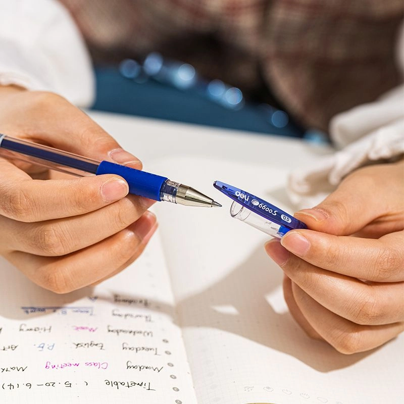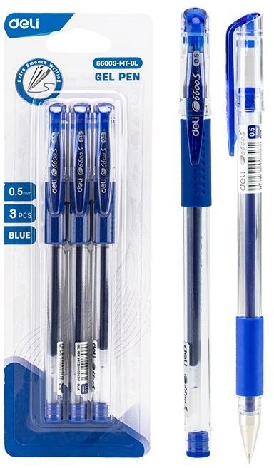 Набор ручек гелев. Deli Daily E6600S-MT-BL прозрачный/синий d=0.5мм син. черн. блистер (3шт) сменный стержень кругл. резин. манжета (продается кратно 24 шт.)