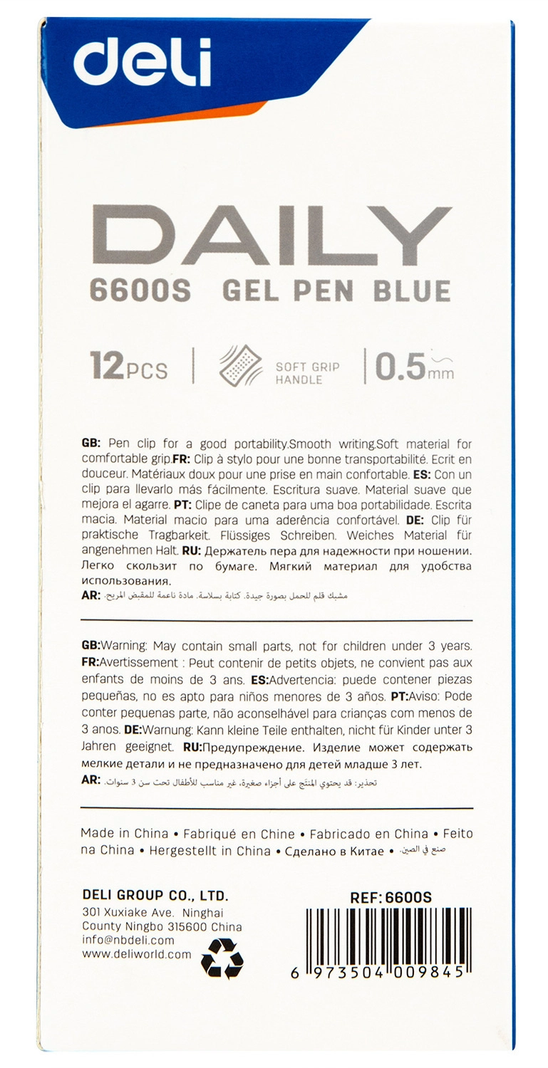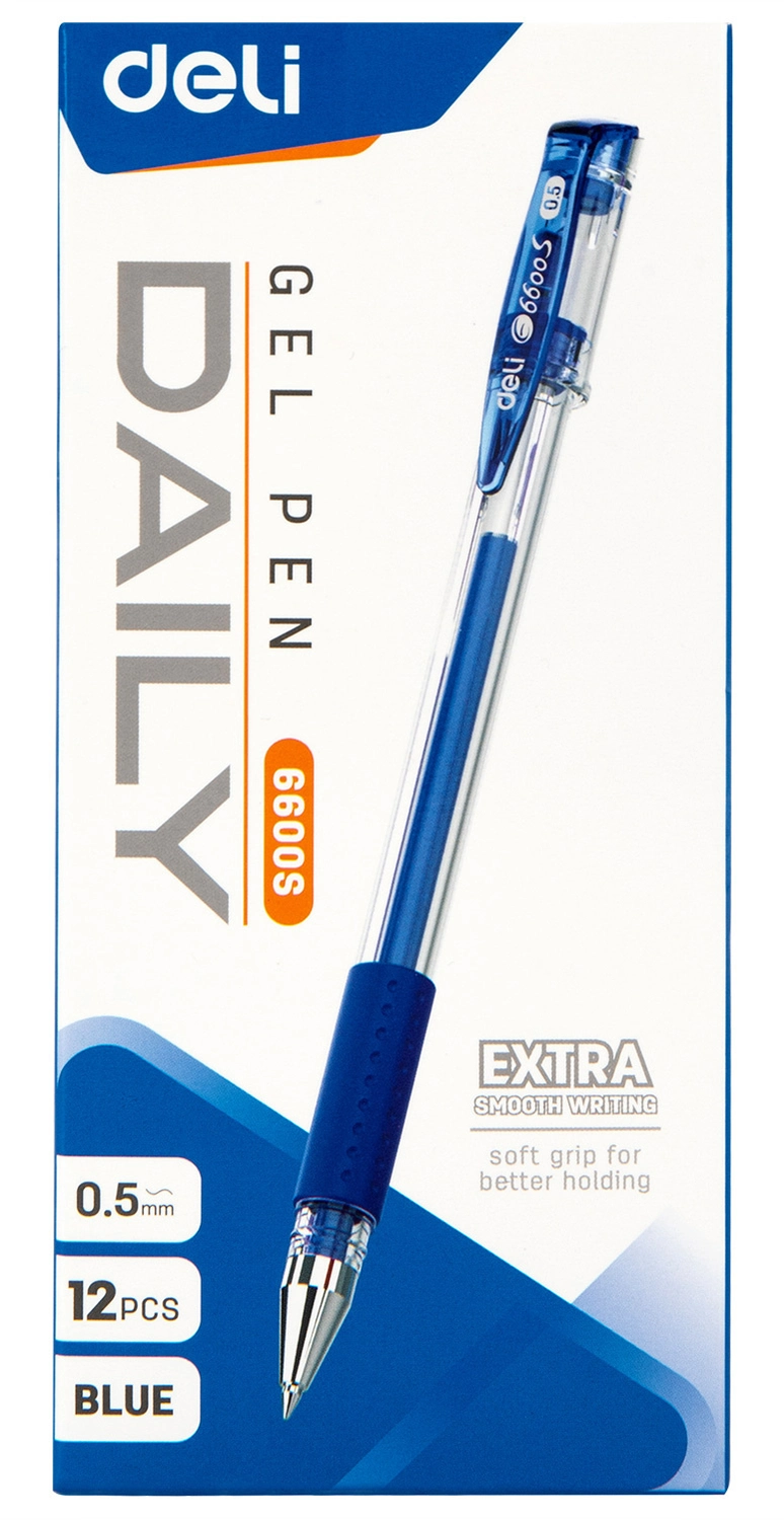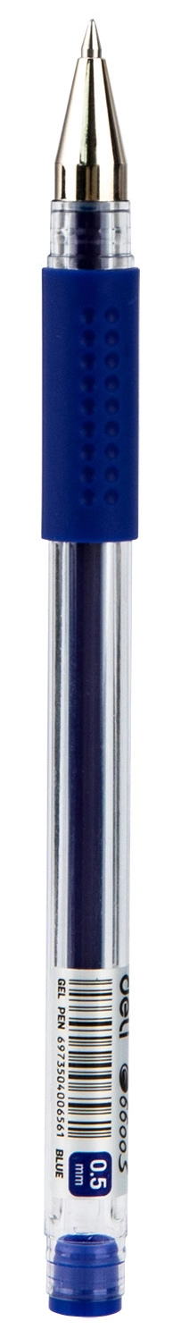 Ручка гелев. Deli Daily E6600SBlue прозрачный d=0.5мм син. черн. резин. манжета (продается кратно 12 шт.)