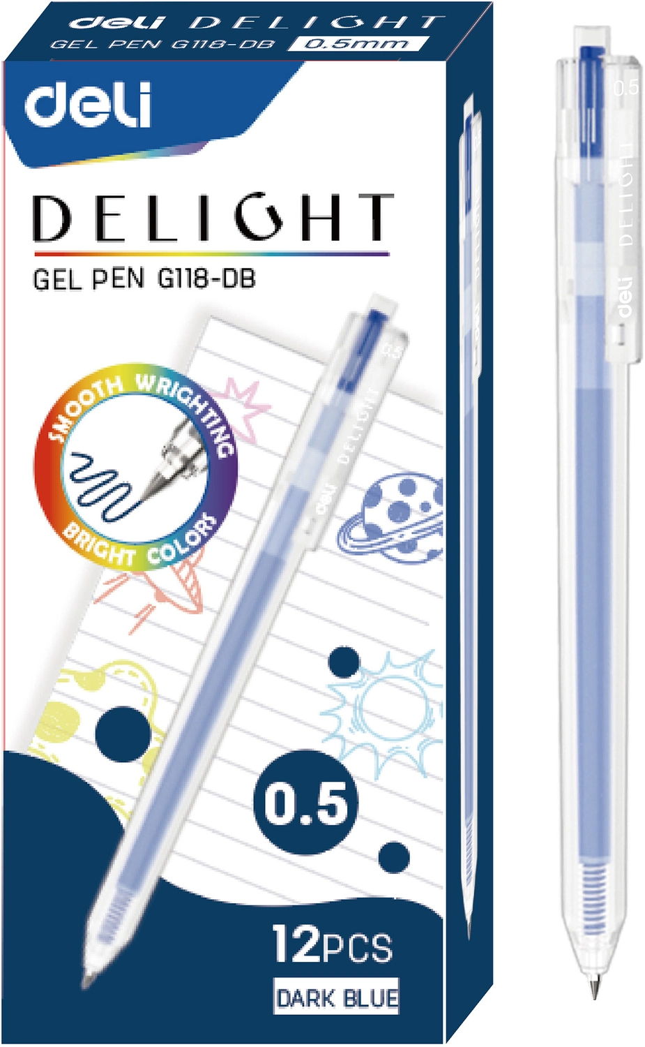 Ручка гелев. автоматическая Deli Delight EG118-DB прозрачный т.син. черн. линия 0.5мм (продается кратно 12 шт.) | НИКС Екатеринбург