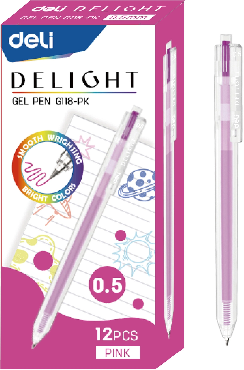 Ручка гелев. Deli Delight EG118-PK прозрачный роз. черн. линия 0.5мм (продается кратно 12 шт.)
