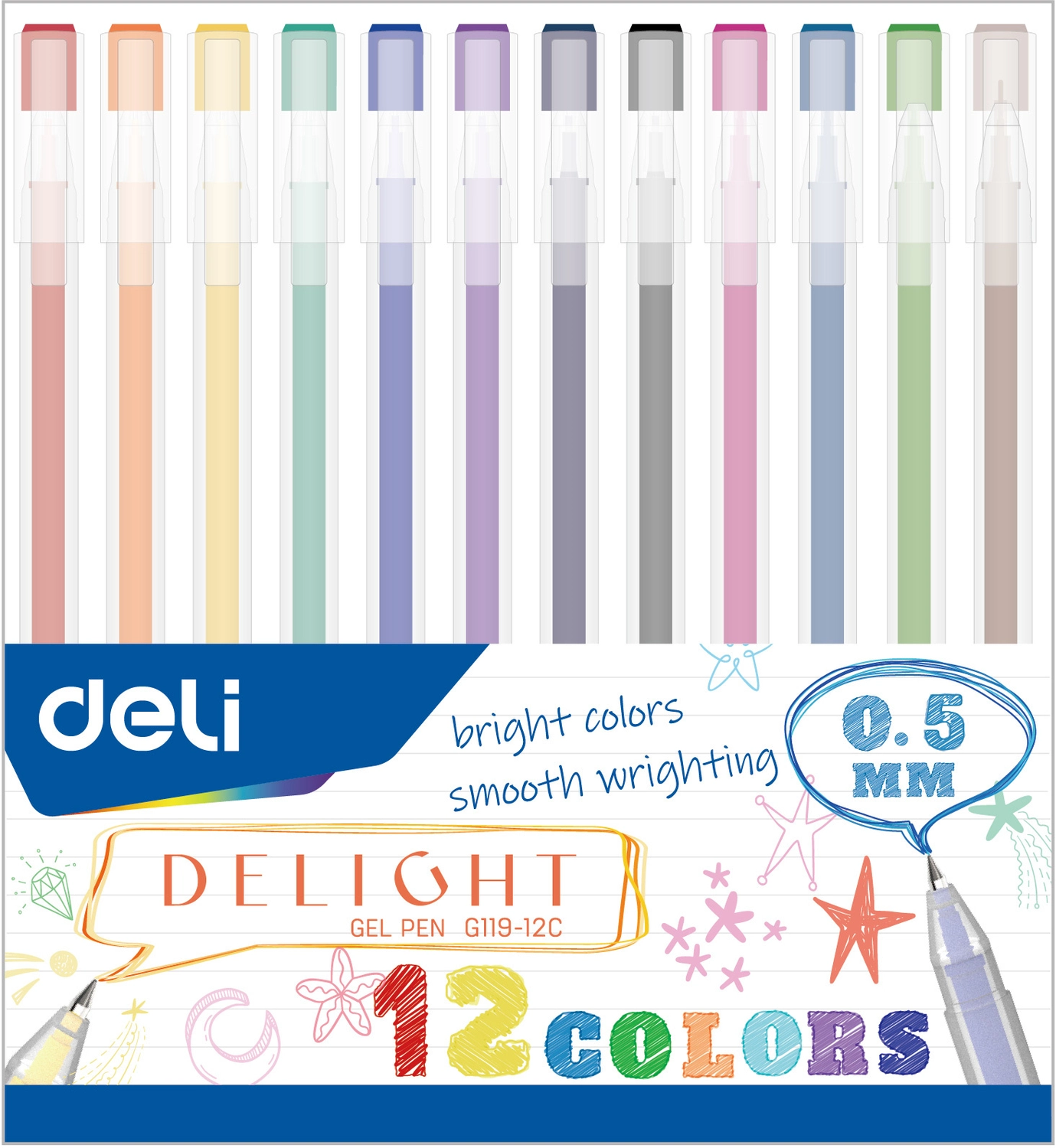 Набор ручек гелев. Deli Delight EG119-12C ассор. черн. (12шт) (продается кратно 12 шт.)