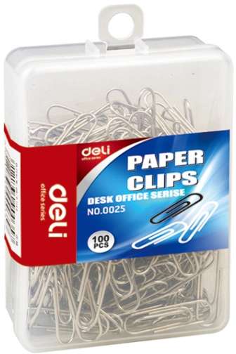 Скрепки Deli E0025 металл 29мм (упак.:100шт) пластиковая коробка (продается кратно 10 шт.)